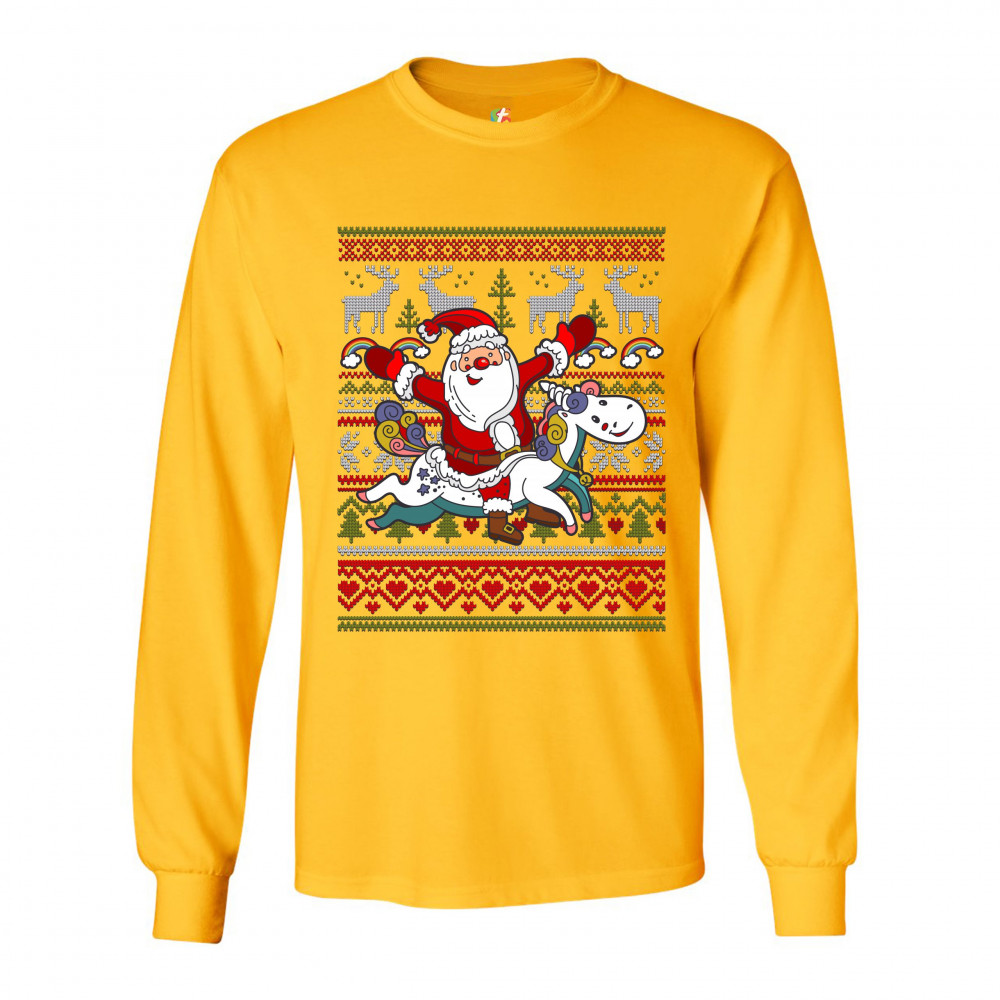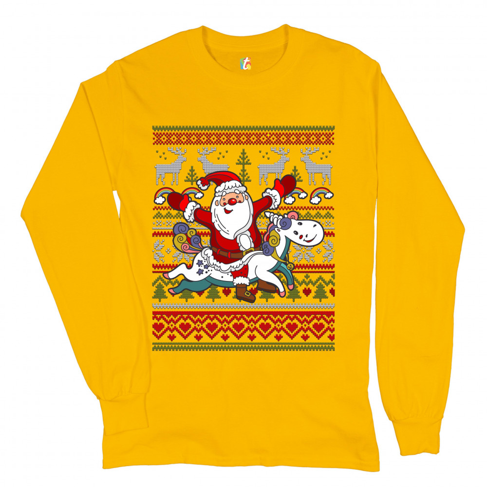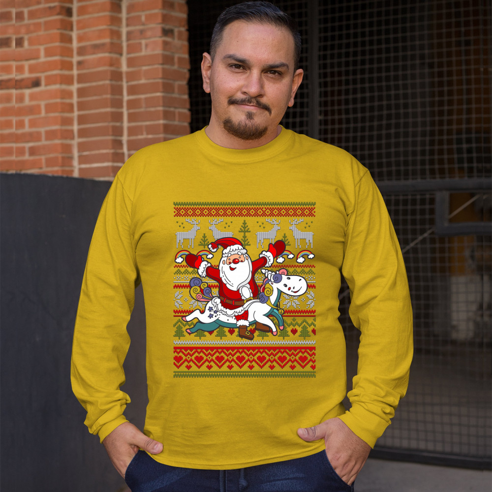 SANTA CLAUS RIDING A UNICORN long sleeve t-shirt merry christmas ugly sweater yellow