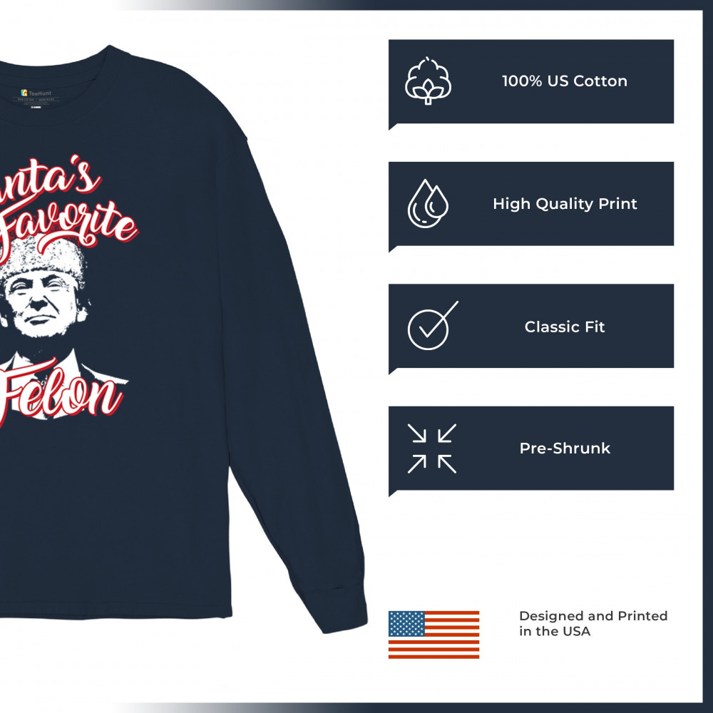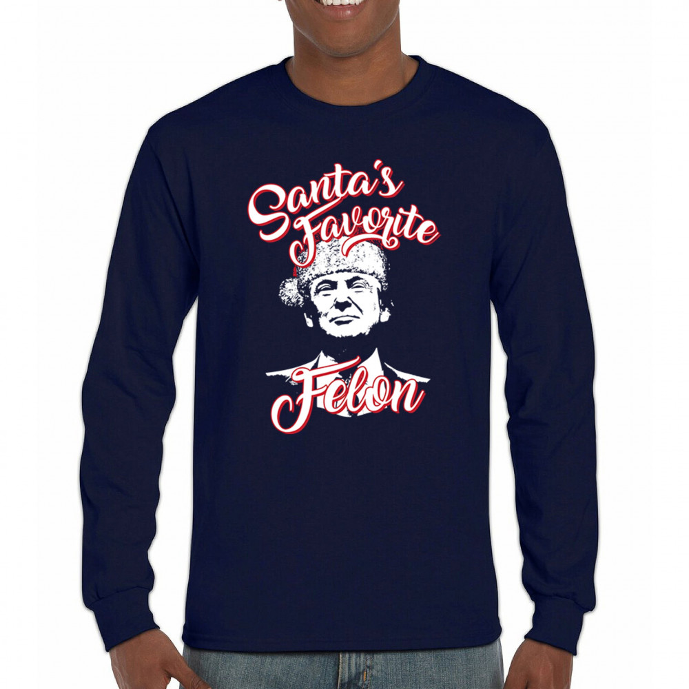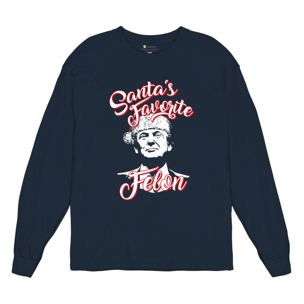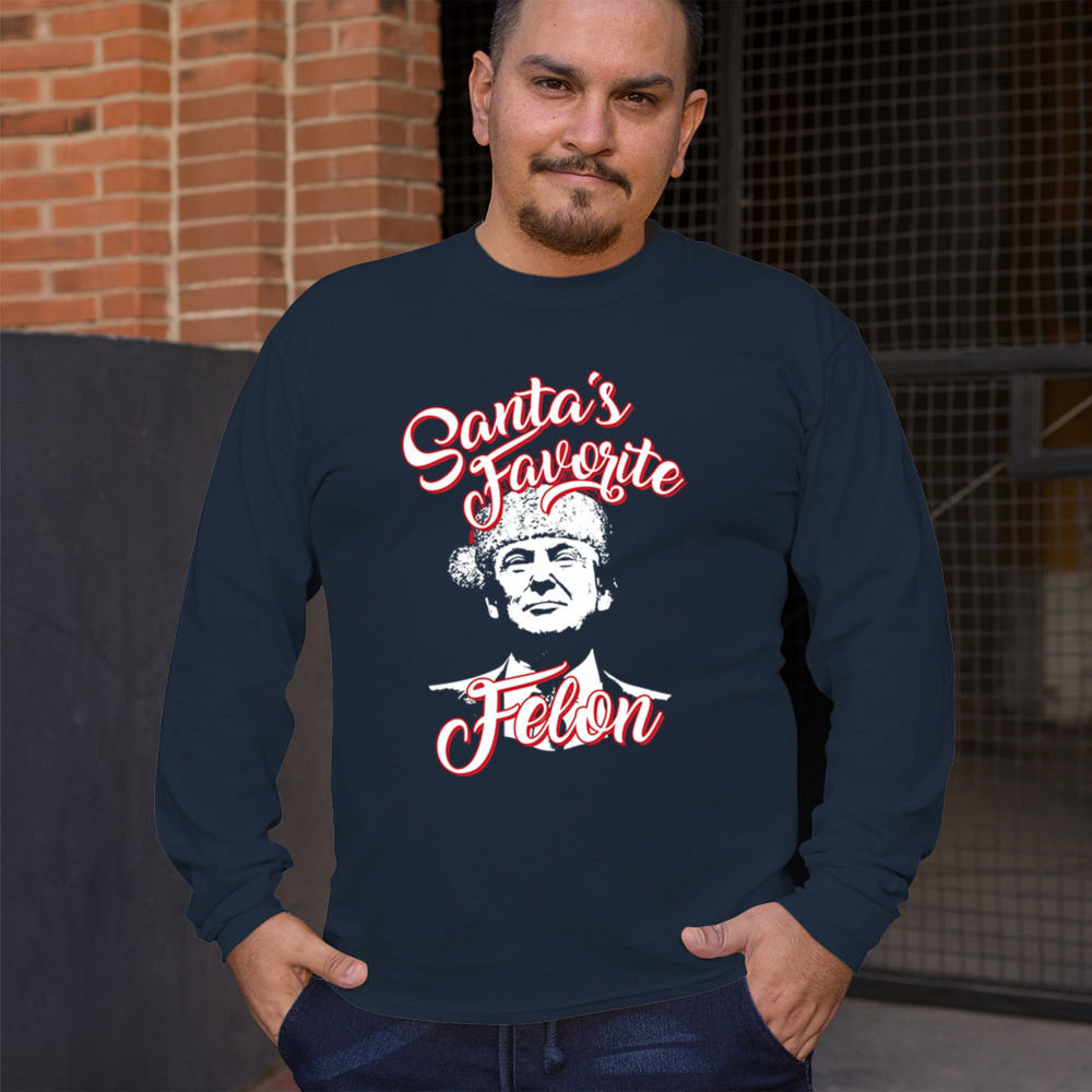 Celebrate the holidays with a touch of humor and political flair with the "Santa's Favorite Felon" design featuring Donald J. Trump. Perfect for Christmas parties, gift exchanges, and festive mornings, this standout design is ideal for sweatshirts, pajamas, or unique holiday gifts. A blend of humor and holiday spirit, this piece is a hit for ugly sweater contests and merry gatherings.