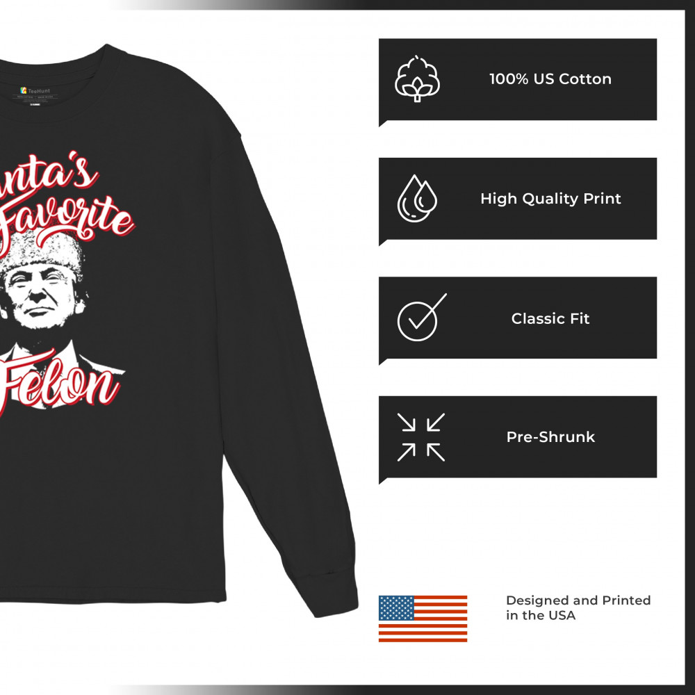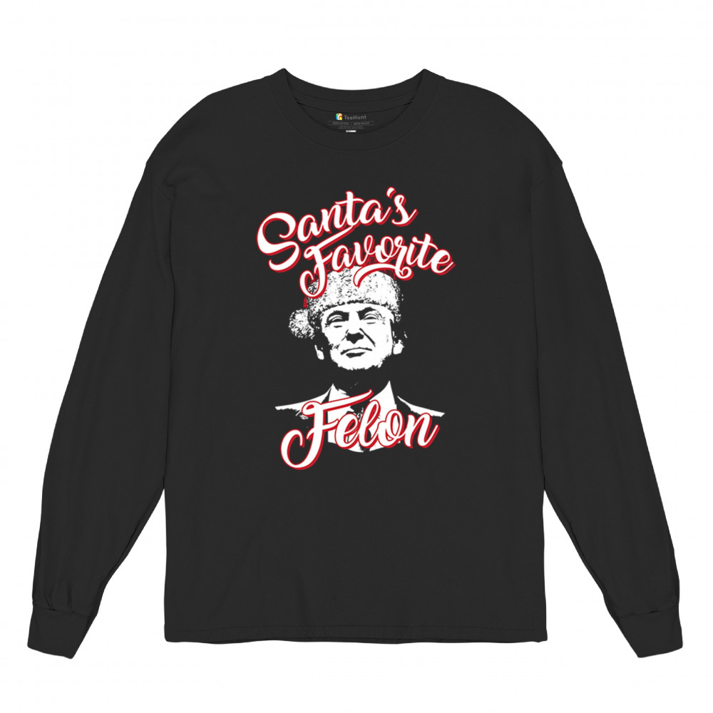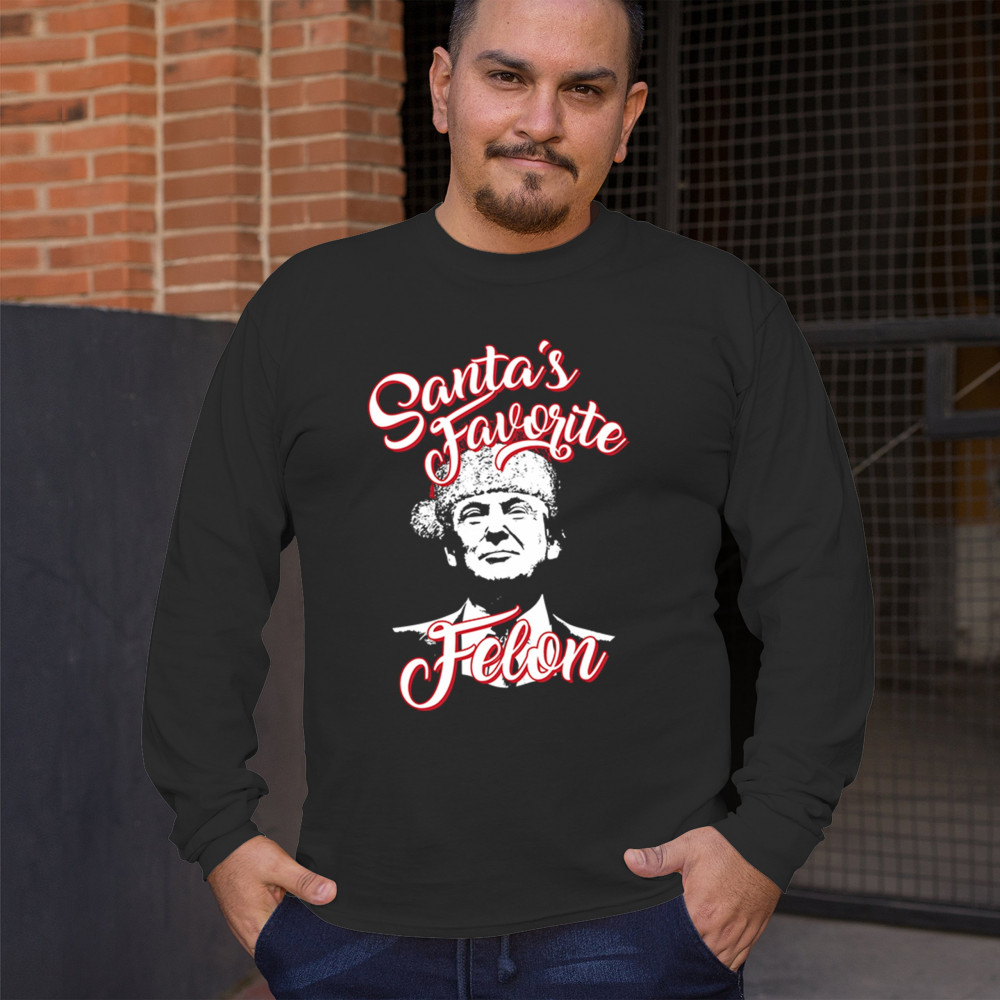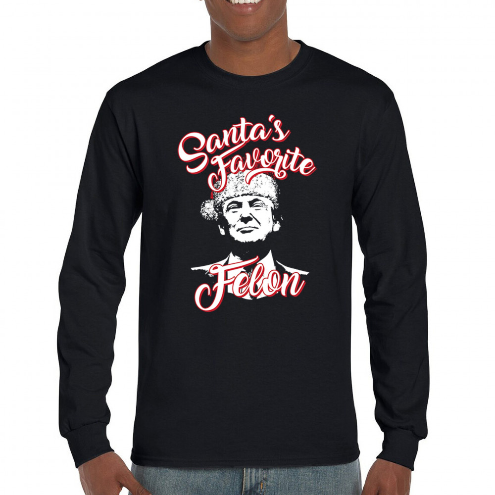 SANTA'S FAVORITE FELON long sleeve t-shirt trump 47 president maga christmas black