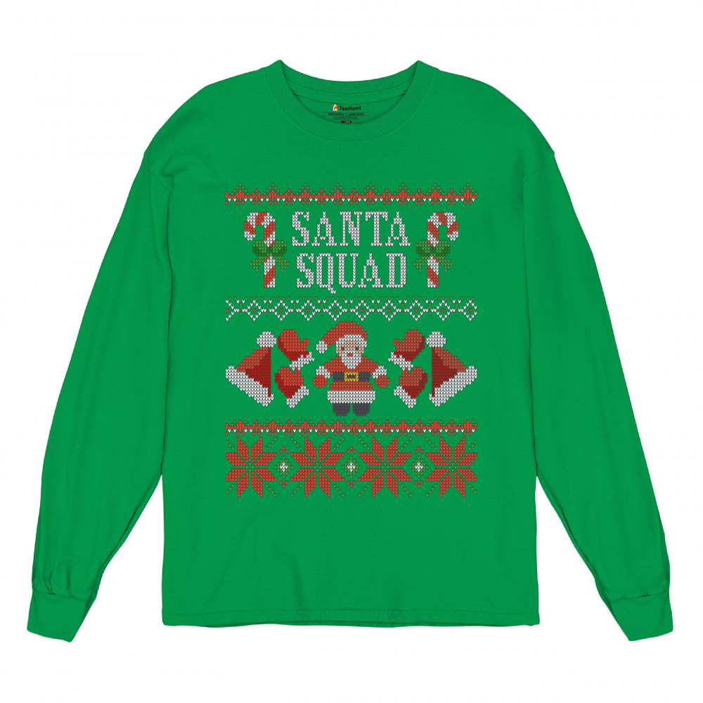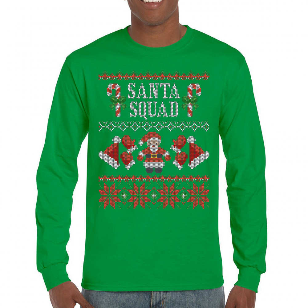 SANTA SQUAD long sleeve t-shirt cute ugly sweater merry and bright christmas green