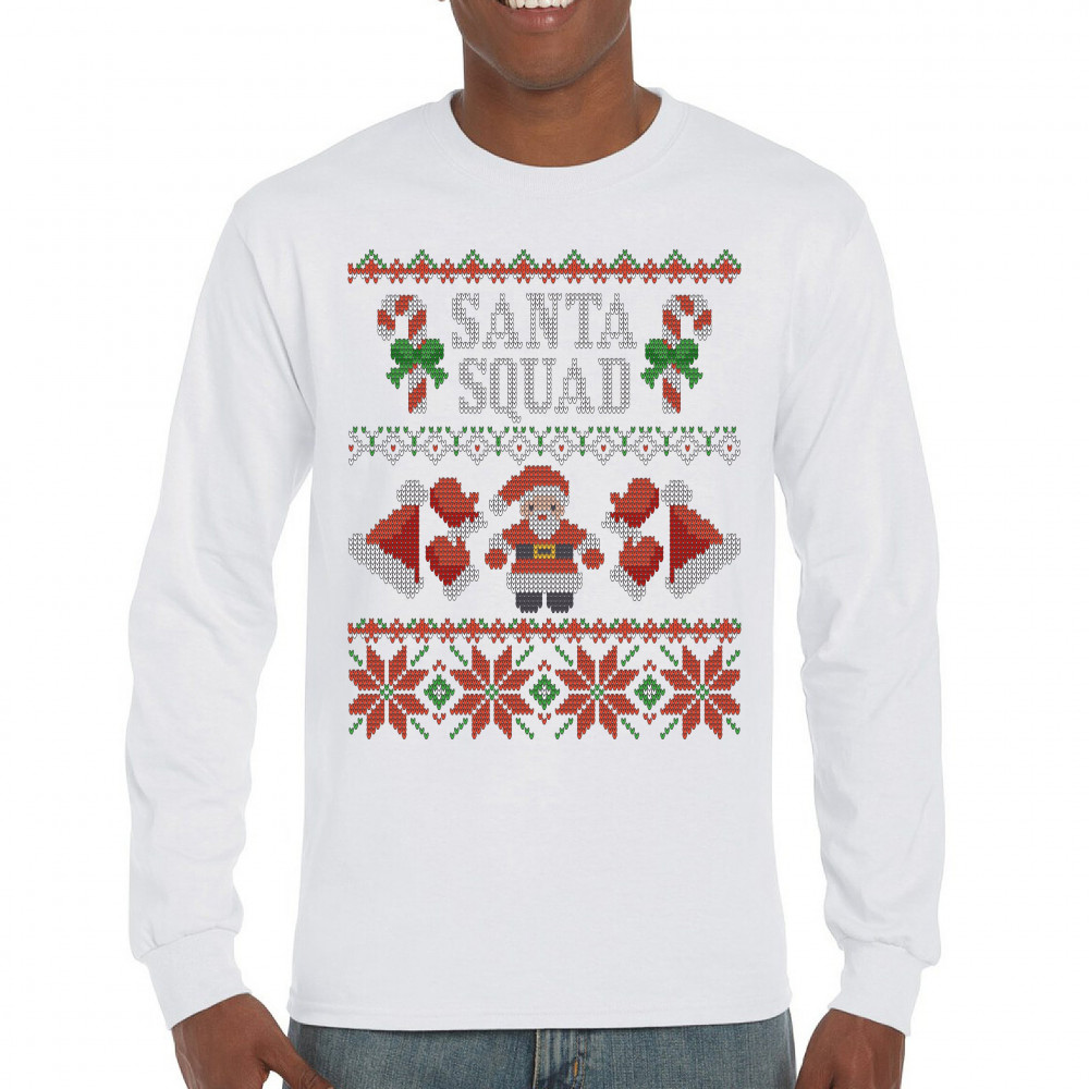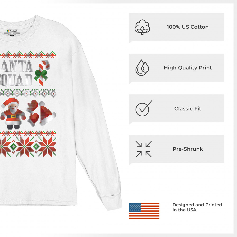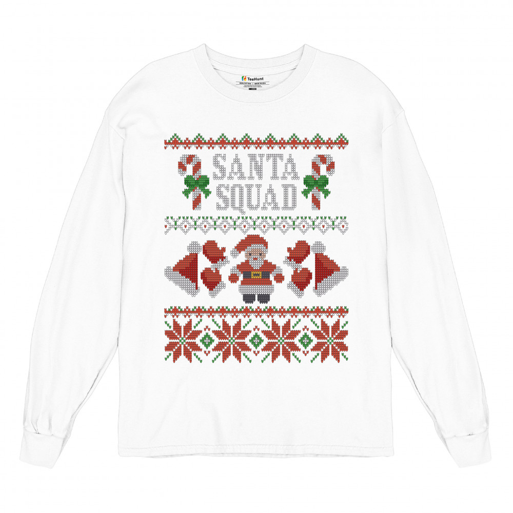 SANTA SQUAD long sleeve t-shirt cute ugly sweater merry and bright christmas white