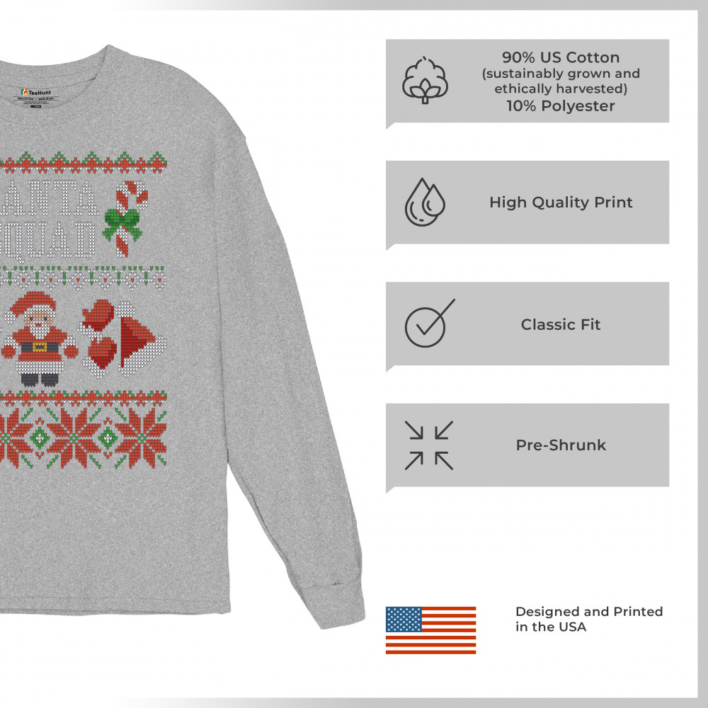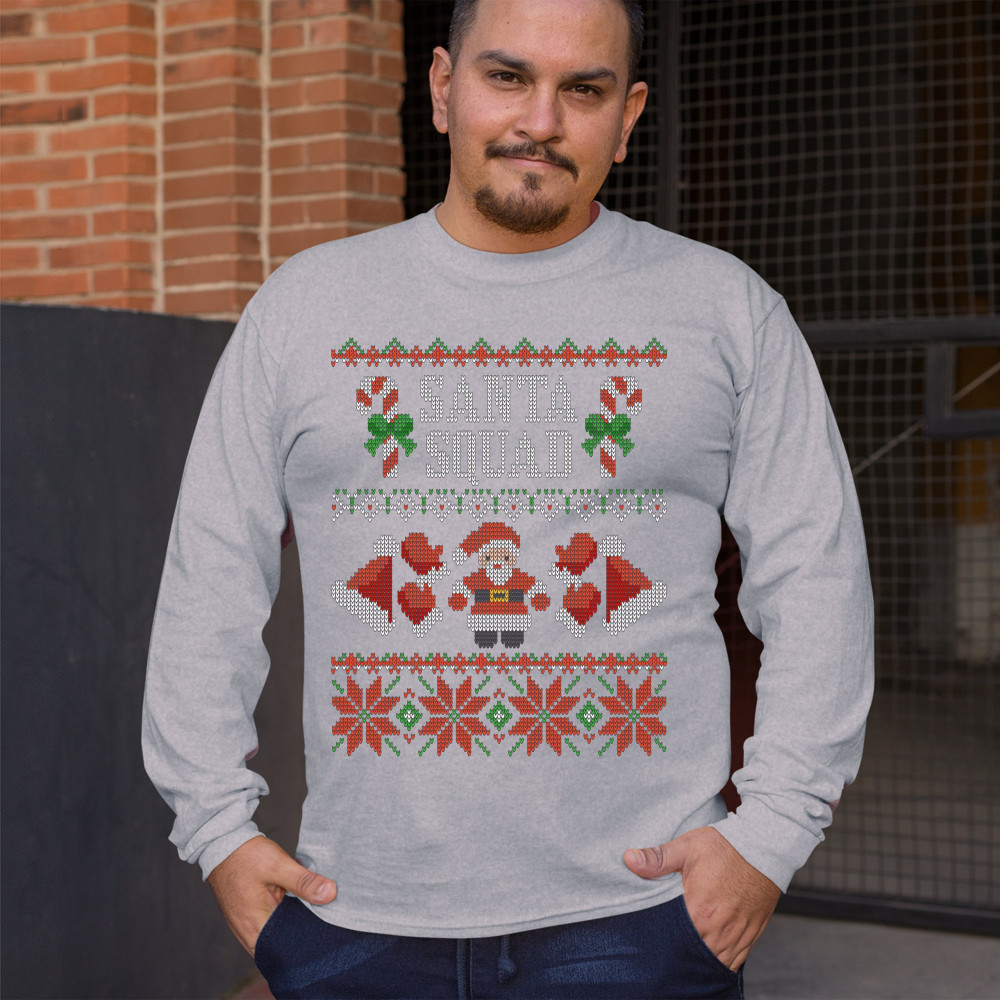 SANTA SQUAD long sleeve t-shirt cute ugly sweater merry and bright christmas gray