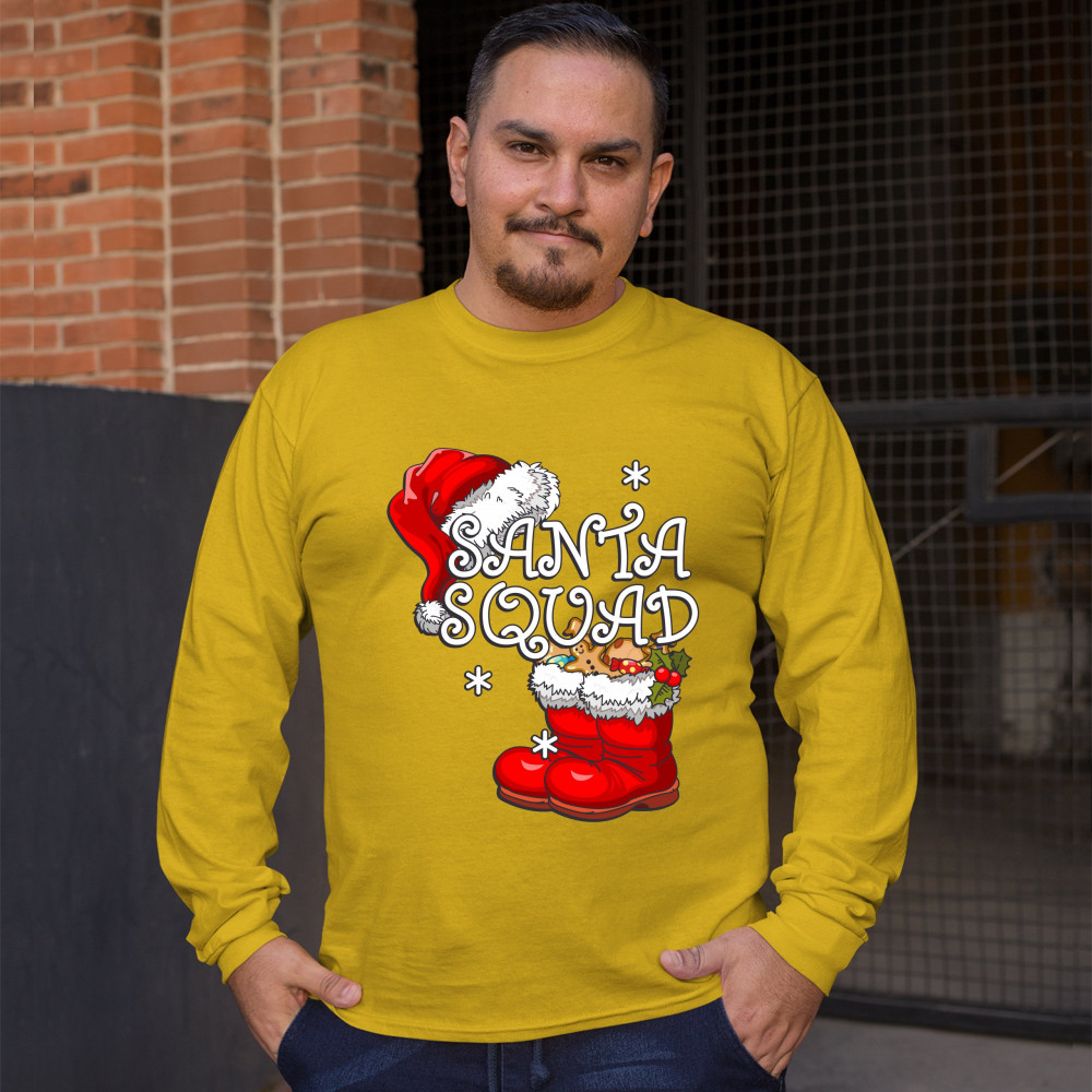SANTA SQUAD long sleeve t-shirt merry christmas reindeer rudolph elf funny yellow