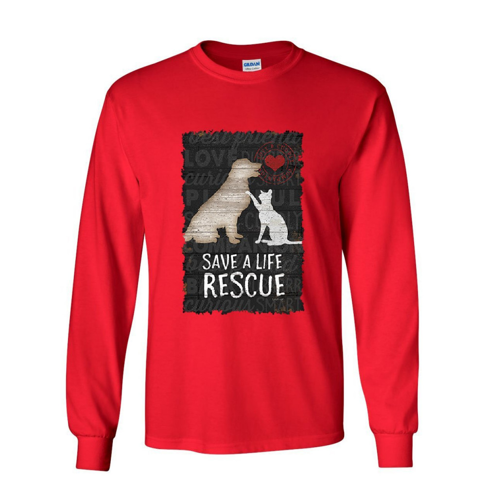 SAVE A LIFE rescue a pet long sleeve t-shirt dog cat kitty puppy shelter paw tee red
