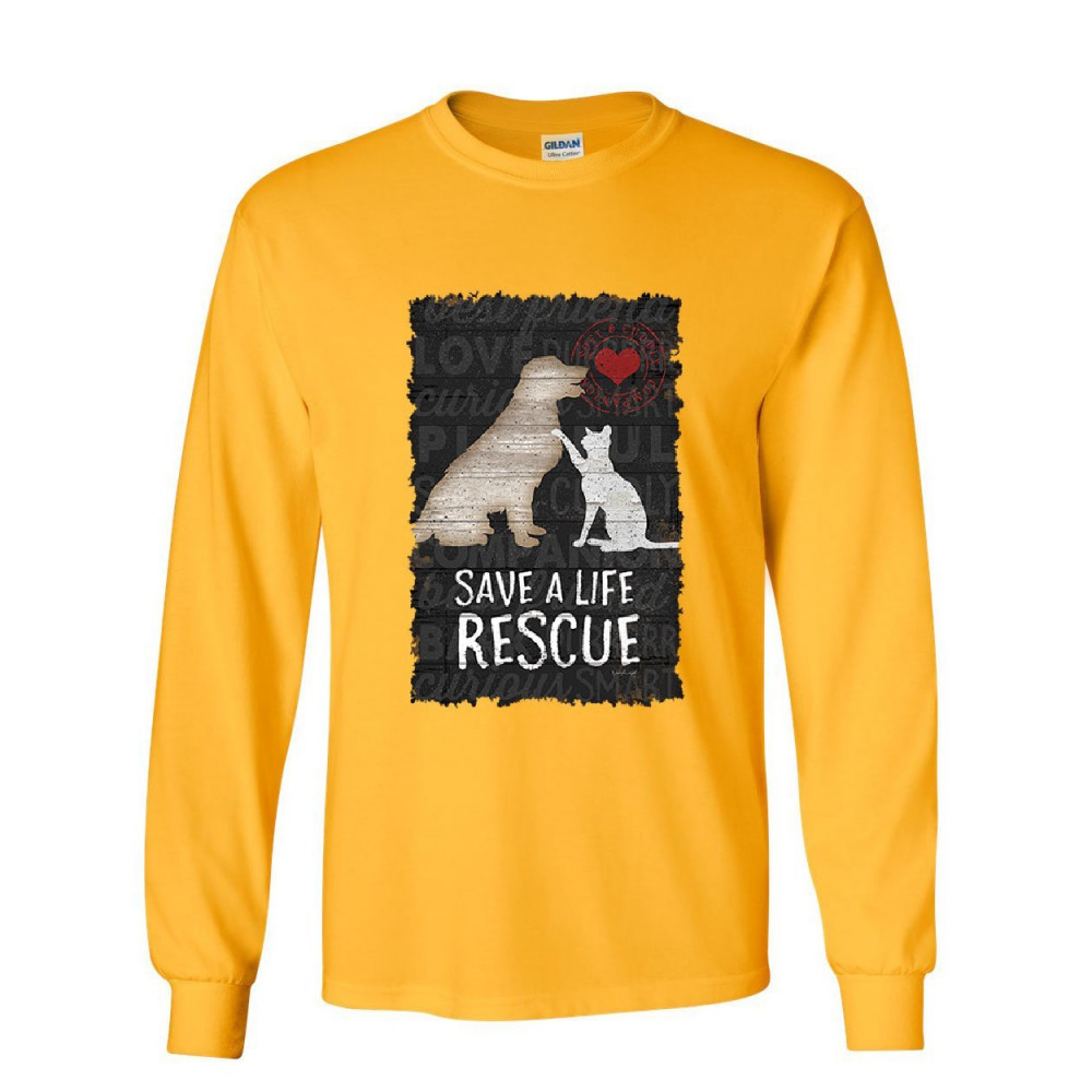 SAVE A LIFE rescue a pet long sleeve t-shirt dog cat kitty puppy shelter paw tee yellow