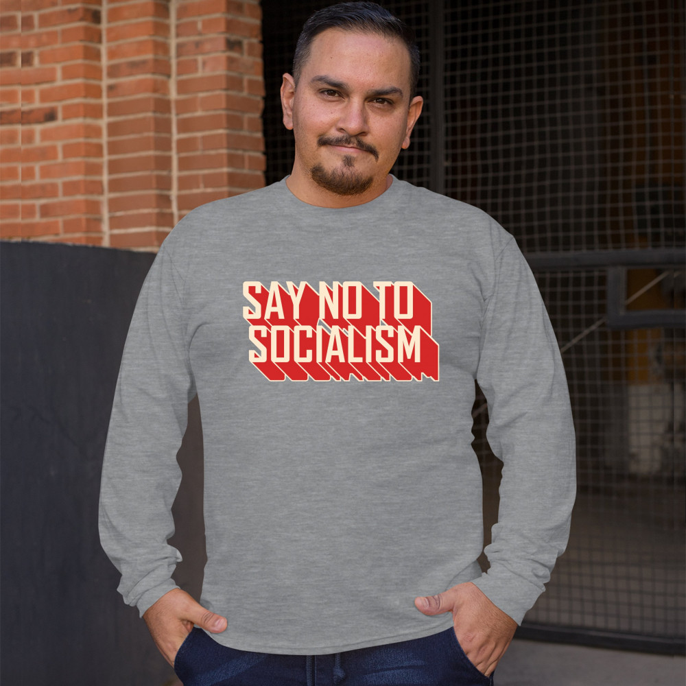 SAY NO TO SOCIALISM long sleeve t-shirt only you can prevent socialism gray
