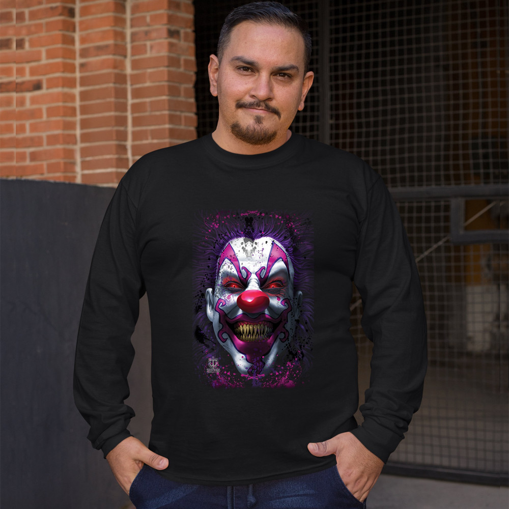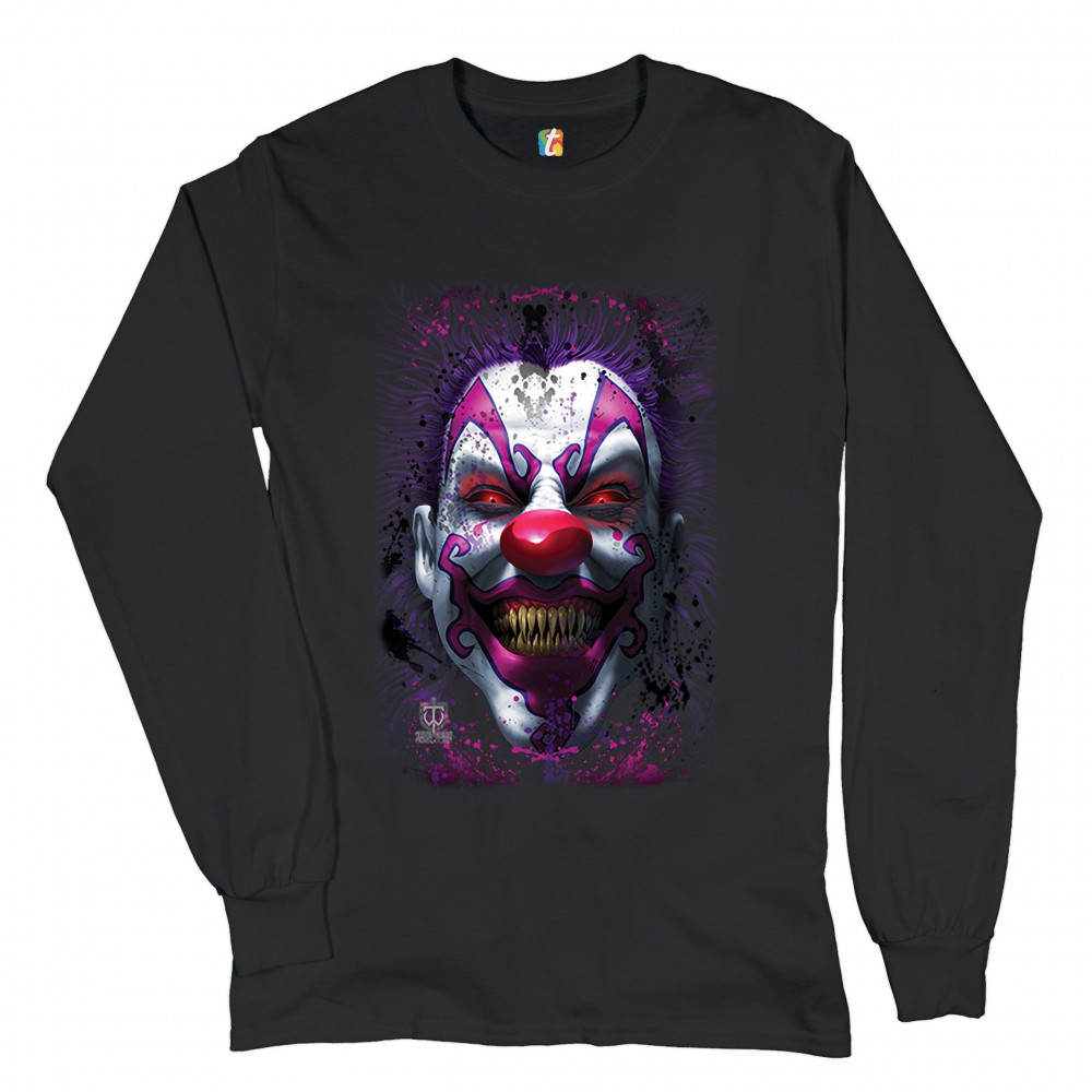 SCARY CREEPY GRINNING CLOWN long sleeve t-shirt spooky halloween horror black