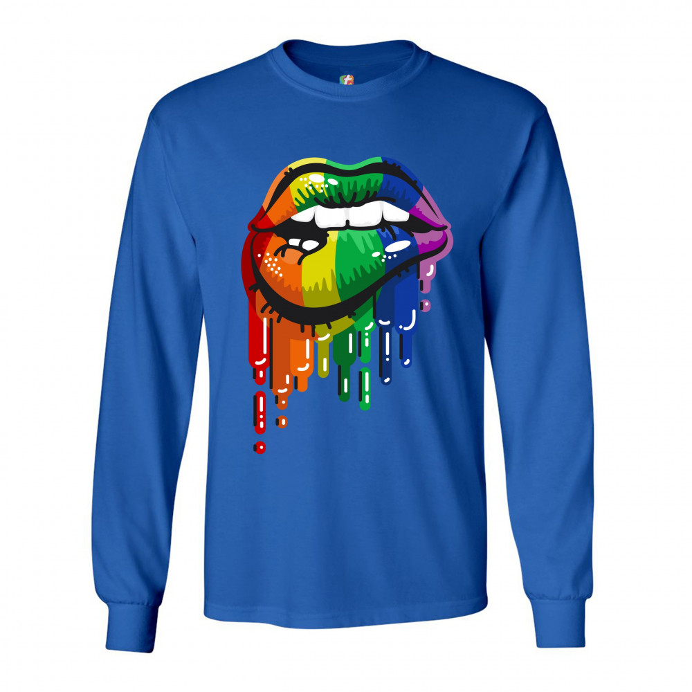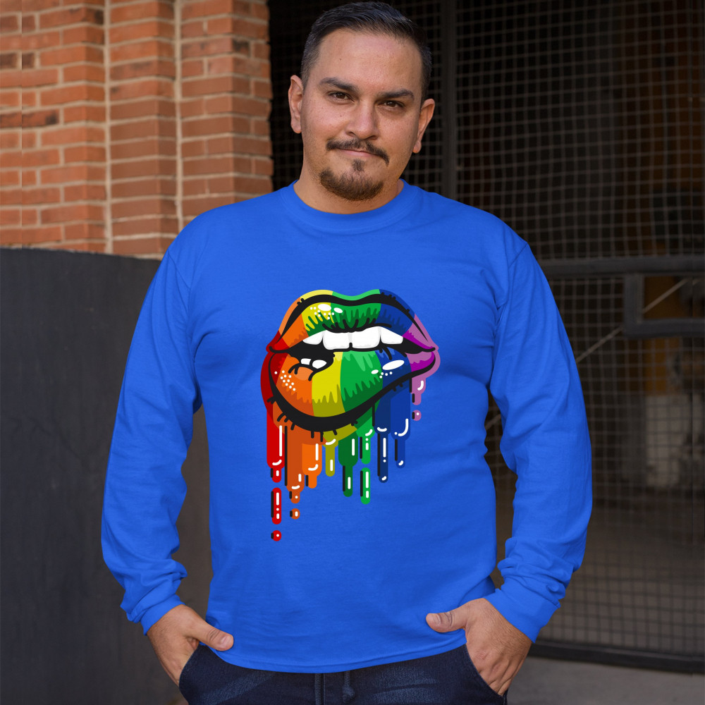 SEXY MELTING RAINBOW LIPS long sleeve t-shirt lgbt queer gay pride love wins royal blue