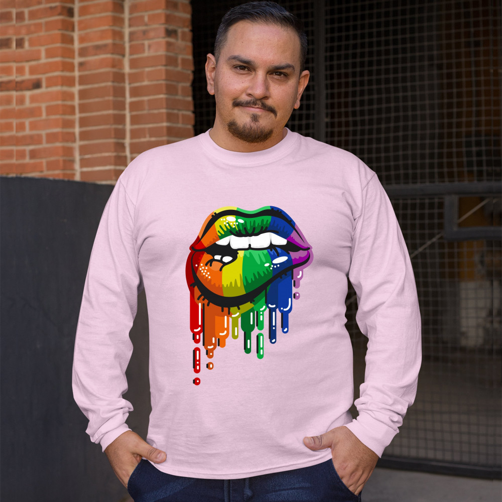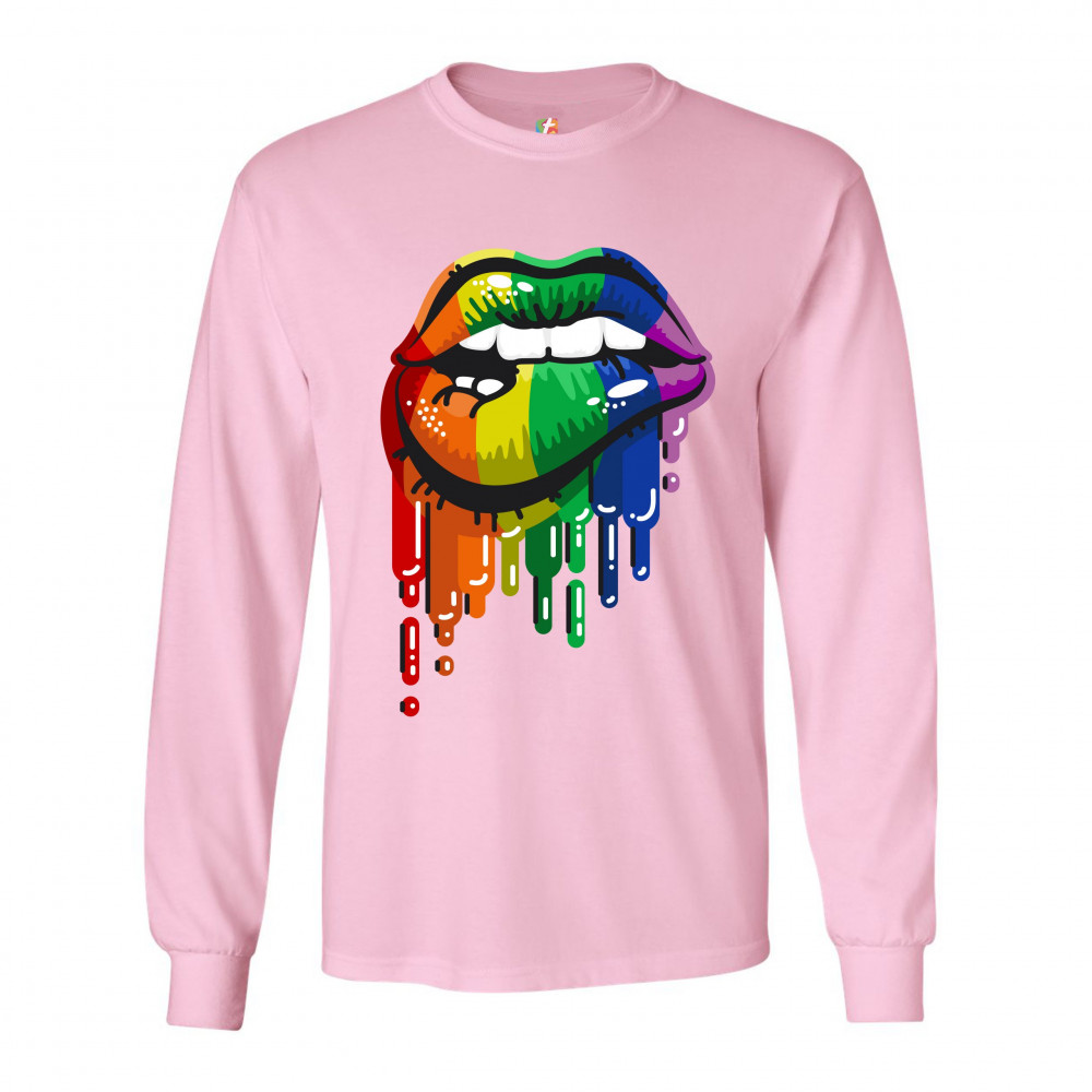 SEXY MELTING RAINBOW LIPS long sleeve t-shirt lgbt queer gay pride love wins pink