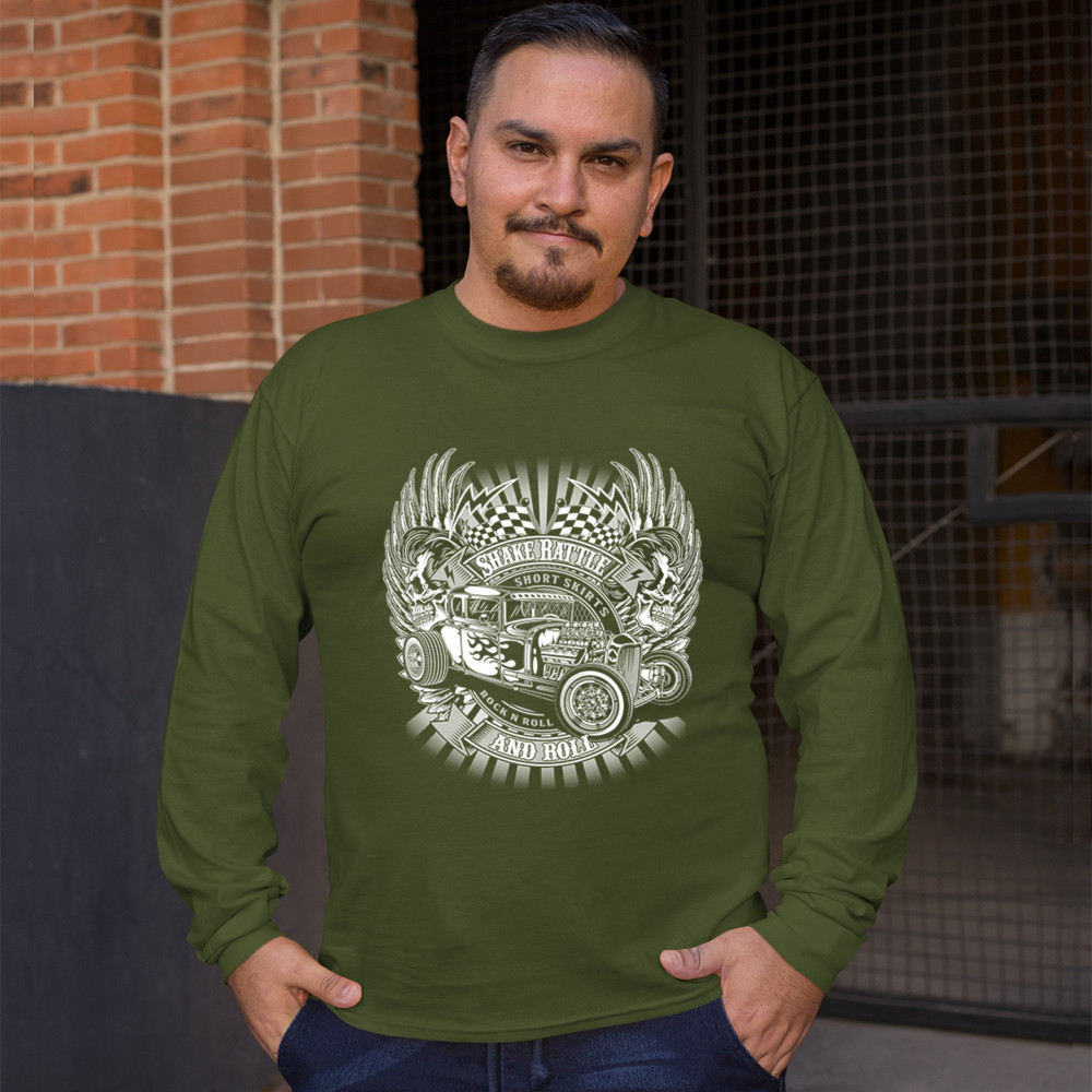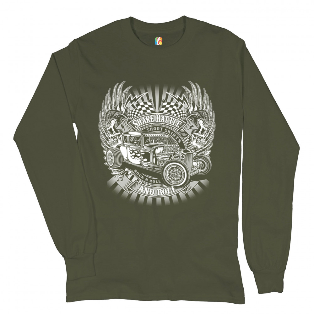 SHAKE RATTLE AND ROLL long sleeve t-shirt old school attitude vintage hot rod military green