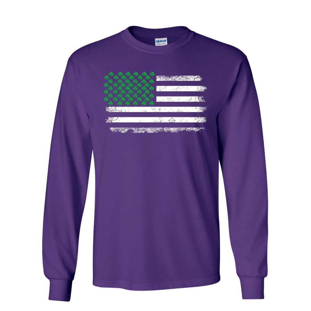 SHAMROCK AMERICAN FLAG long sleeve t-shirt stars and stripes st. patrick's tee purple