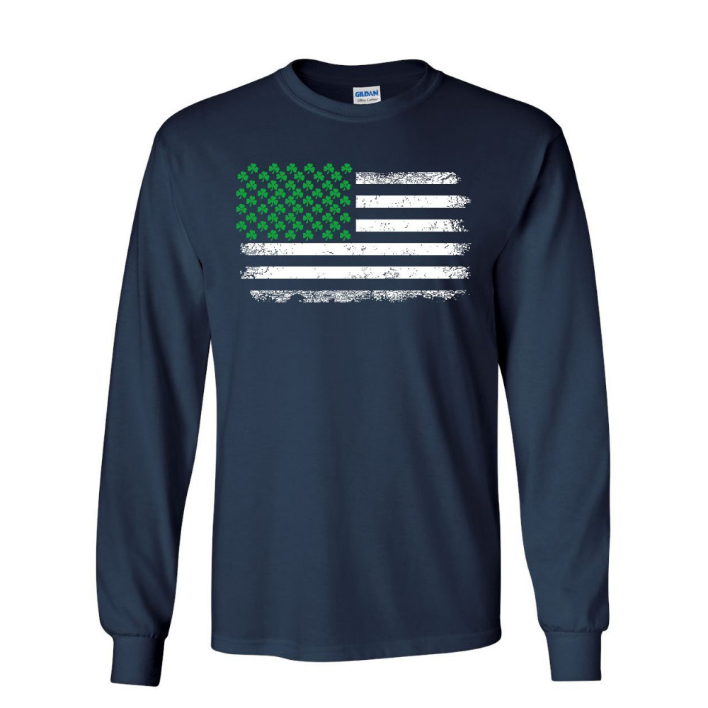 SHAMROCK AMERICAN FLAG long sleeve t-shirt stars and stripes st. patrick's tee navy blue
