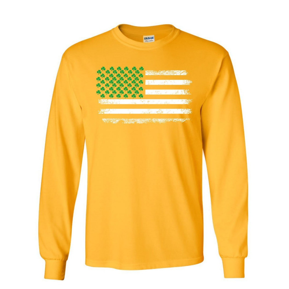 SHAMROCK AMERICAN FLAG long sleeve t-shirt stars and stripes st. patrick's tee yellow