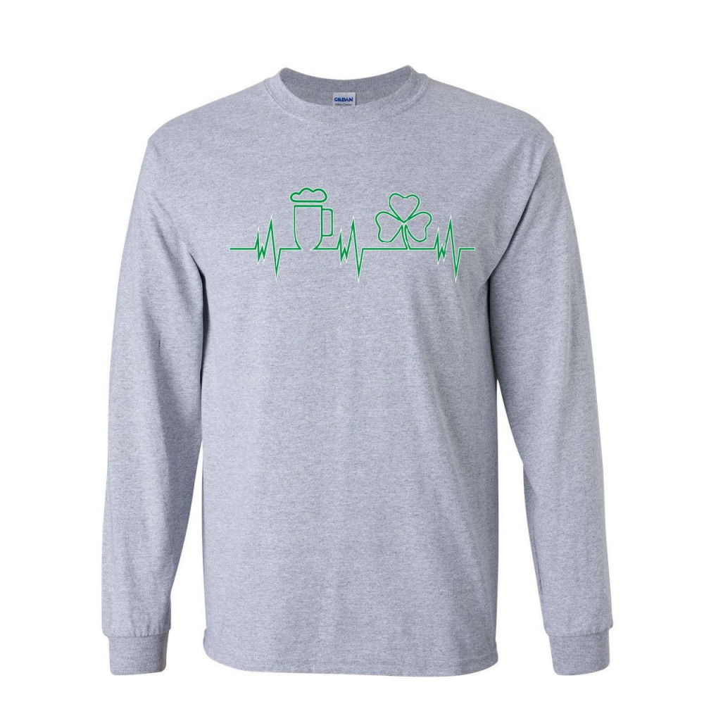 SHAMROCK & BEER HEARTBEET shamrock beer heartbeet long sleeve t-shirt st. patrick's day irish drinking tee gray