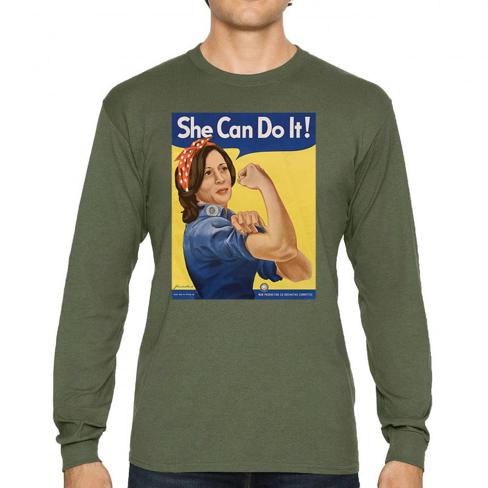 Show your support for Kamala Harris in 2024 with this empowering "She Can Do It!" design. Inspired by Rosie the Riveter, it symbolizes strength, equality, and progress.
