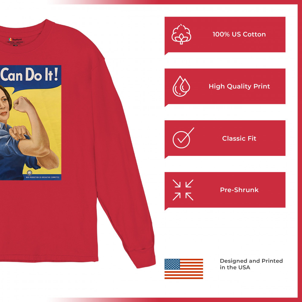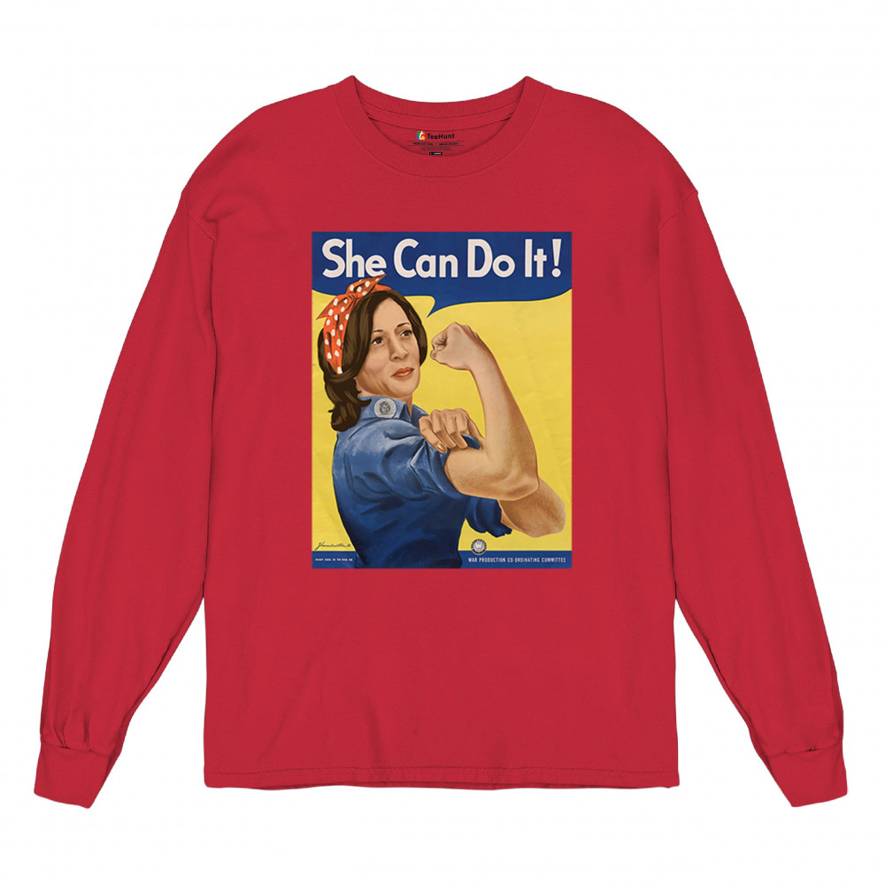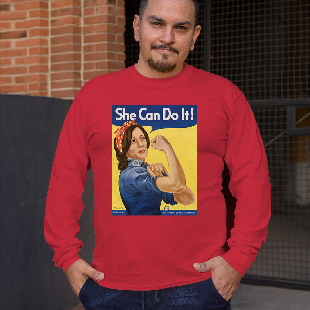 Show your support for Kamala Harris in 2024 with this empowering "She Can Do It!" design. Inspired by Rosie the Riveter, it symbolizes strength, equality, and progress.