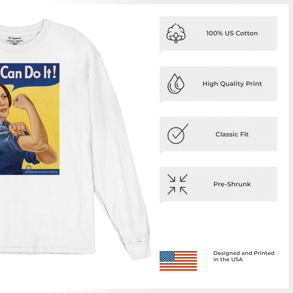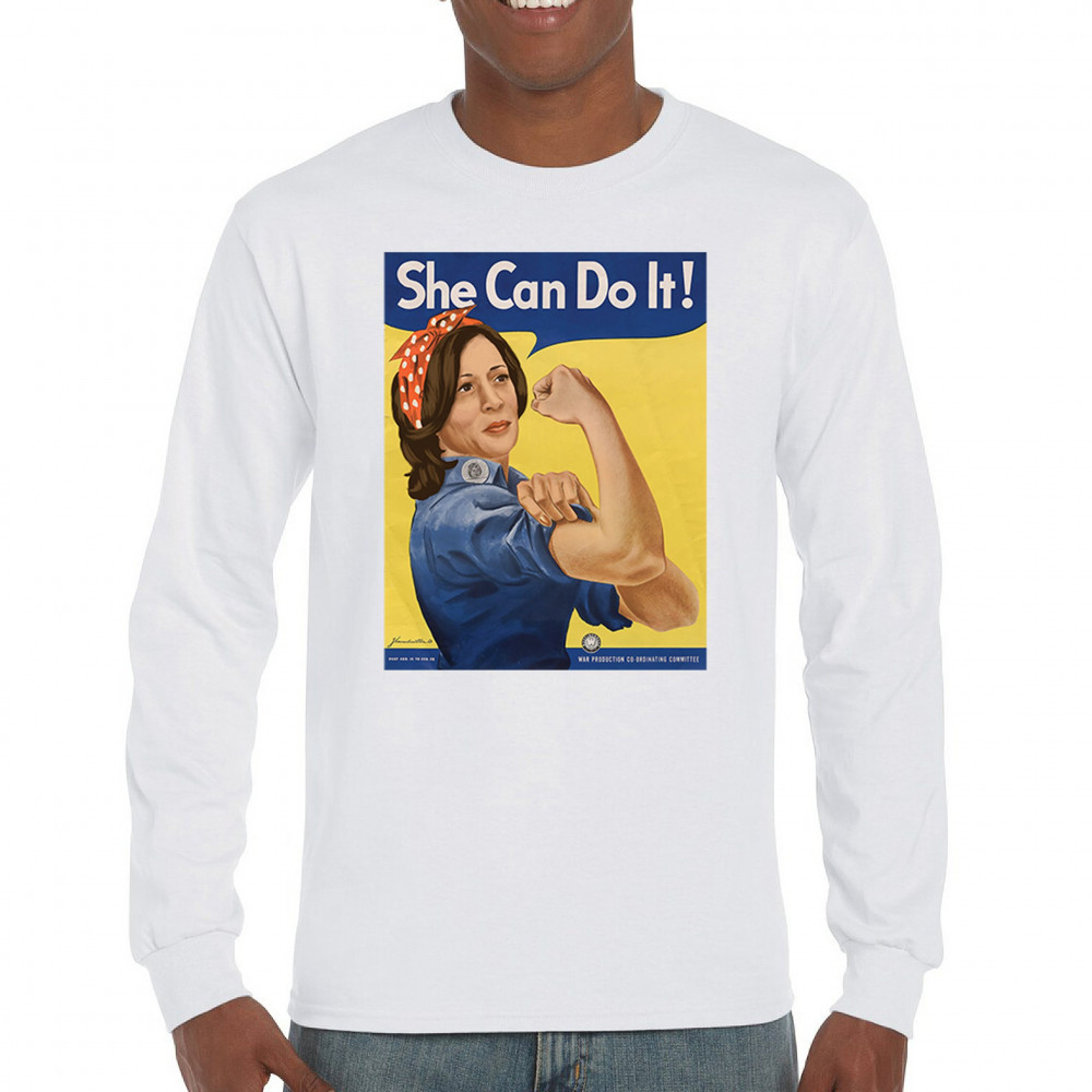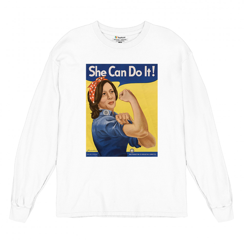 Show your support for Kamala Harris in 2024 with this empowering "She Can Do It!" design. Inspired by Rosie the Riveter, it symbolizes strength, equality, and progress.