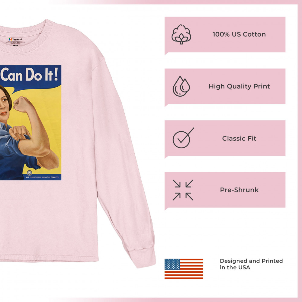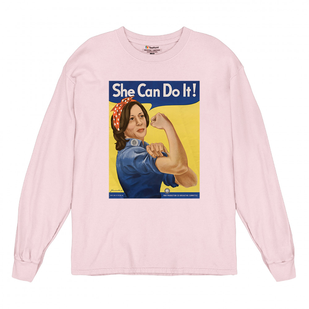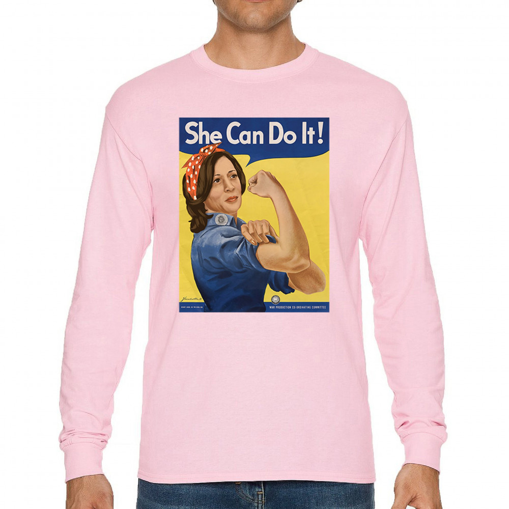 Show your support for Kamala Harris in 2024 with this empowering "She Can Do It!" design. Inspired by Rosie the Riveter, it symbolizes strength, equality, and progress.