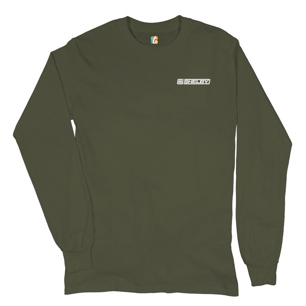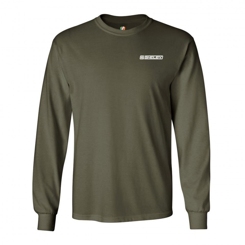 SHELBY AMERICAN, INC. LOGO long sleeve t-shirt sports muscle cars licensed military green