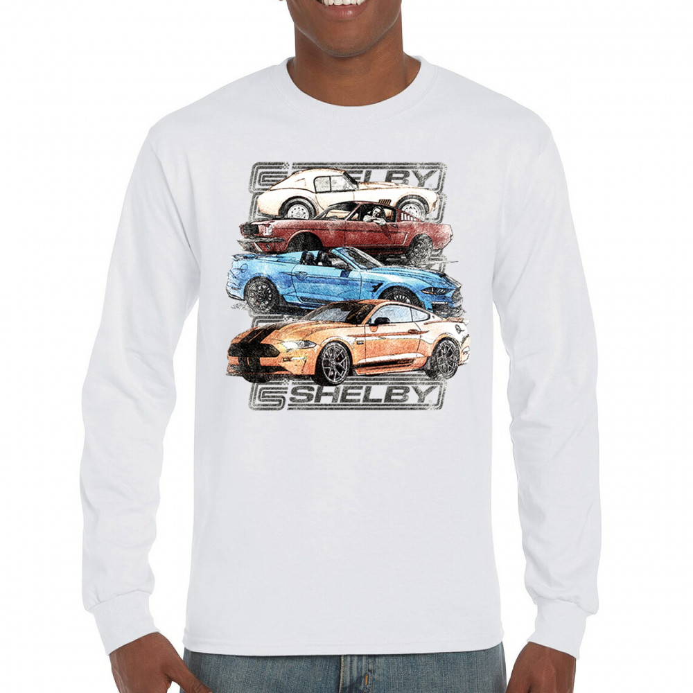 This artistic rendition showcases the Ford Mustang's journey from a 1966 classic to the modern marvels of Ford racing. It's an ode to the muscle car evolution, powered by the genius of Carroll Shelby and the grit of American performance. With the Shelby Cobra at its heart, this design is for the enthusiast, the collector, the racer. The GT350, the Boss 302, and the legendary Ken Miles come alive, making this the perfect Shelby Cobra gift, a hat tip to half a century of American icons.