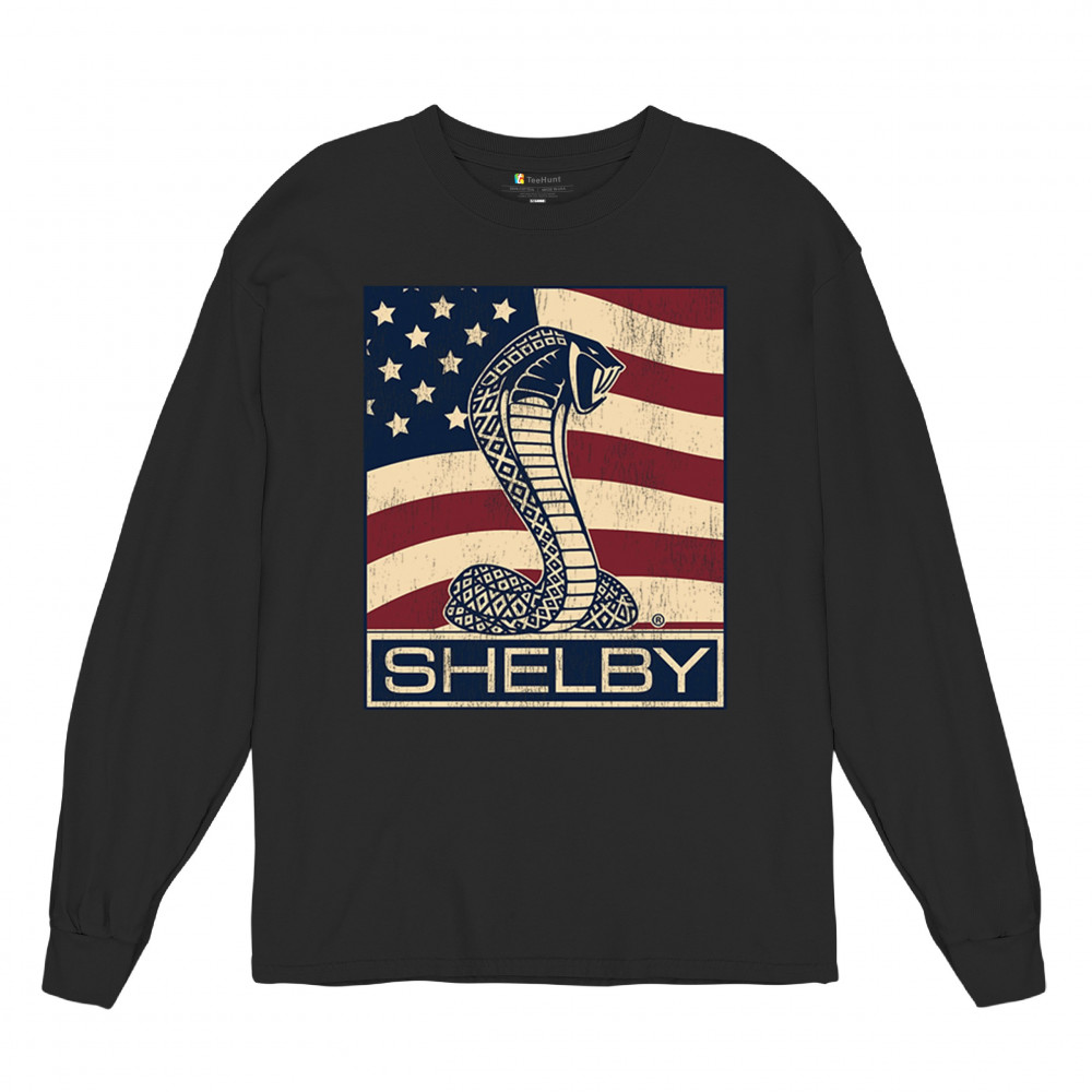 SHELBY COBRA FLAG long sleeve t-shirt legend racing mustang gt powered by ford black