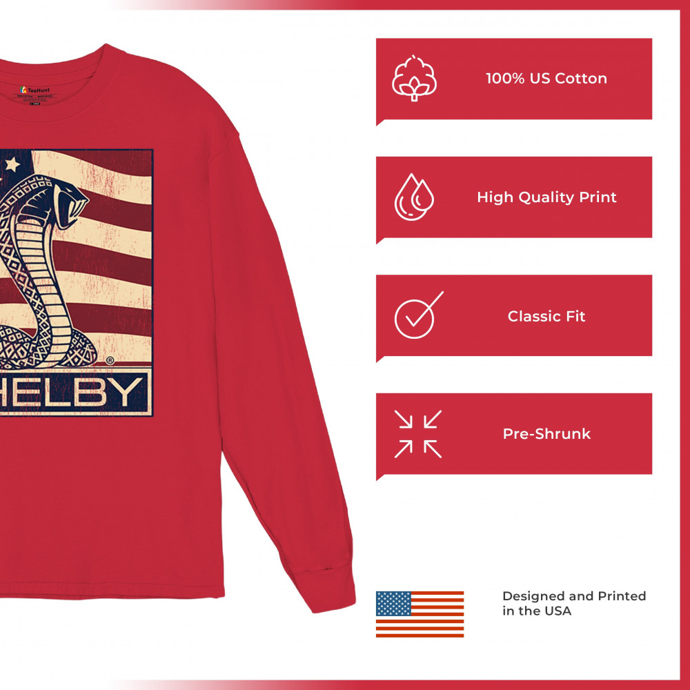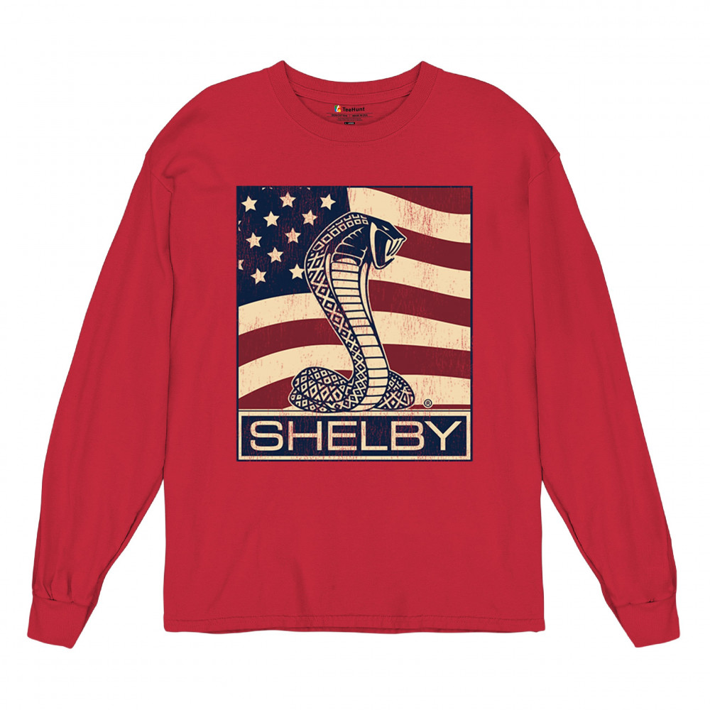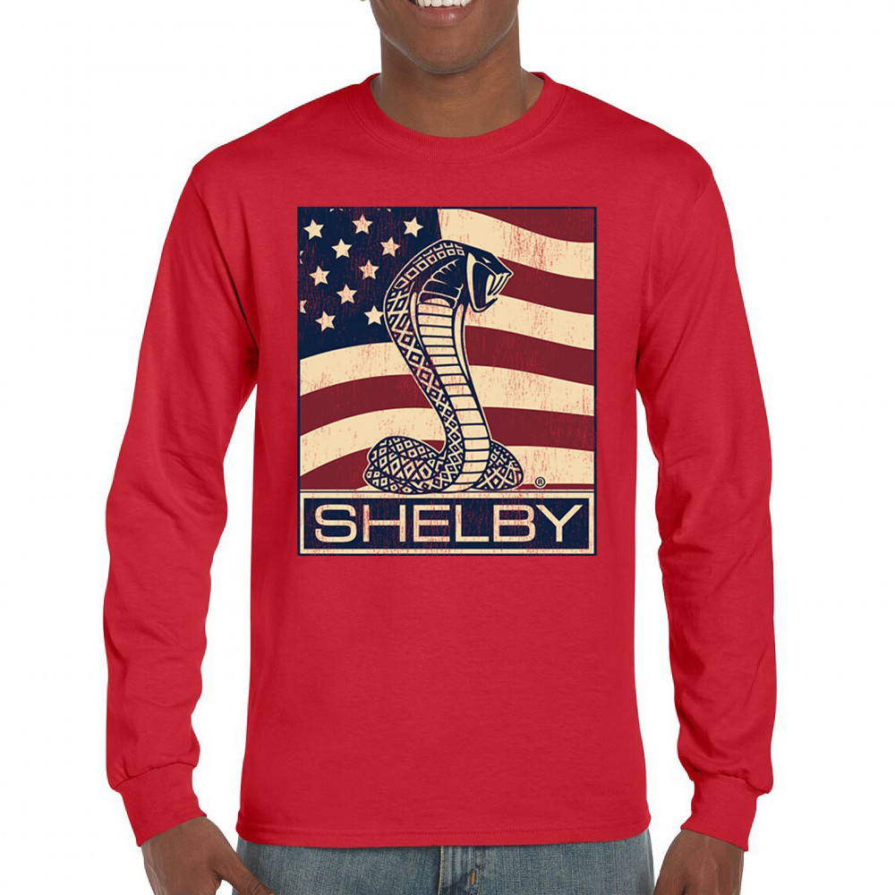 SHELBY COBRA FLAG long sleeve t-shirt legend racing mustang gt powered by ford red
