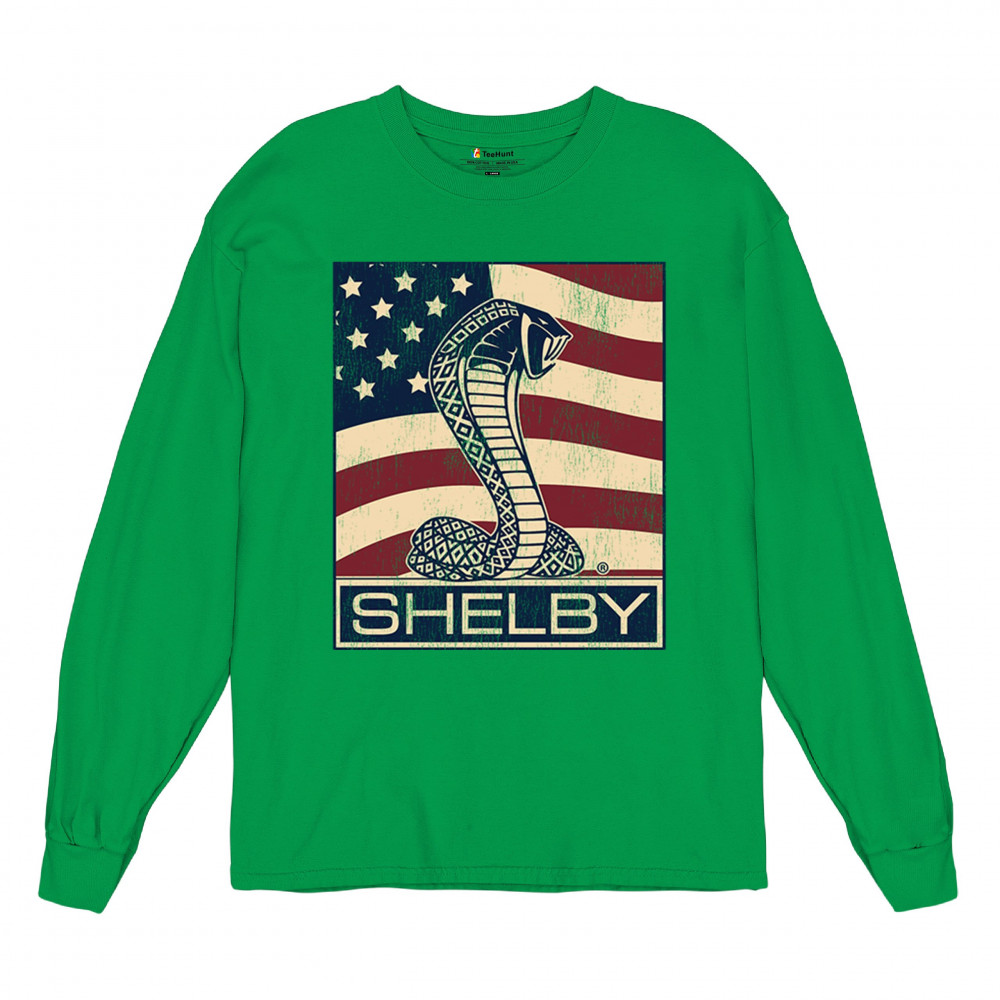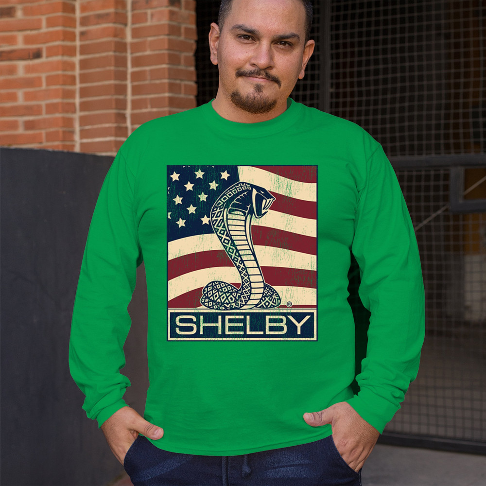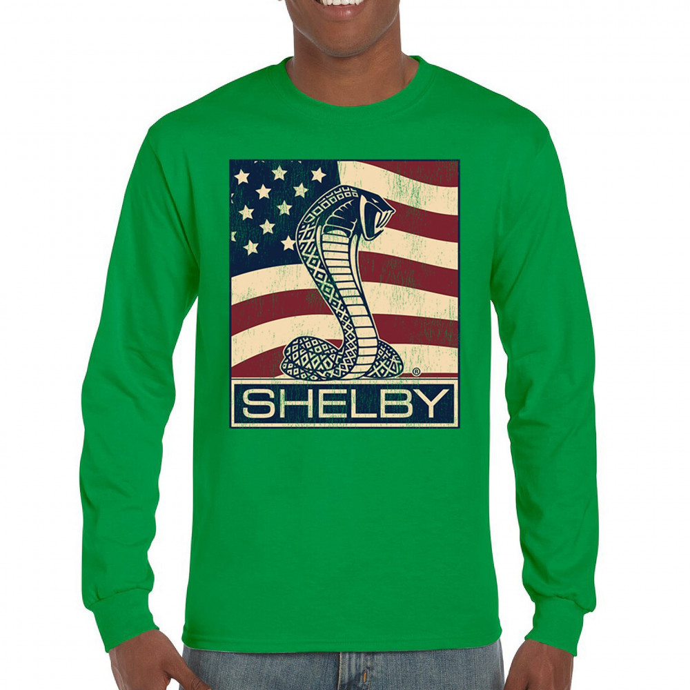 SHELBY COBRA FLAG long sleeve t-shirt legend racing mustang gt powered by ford green