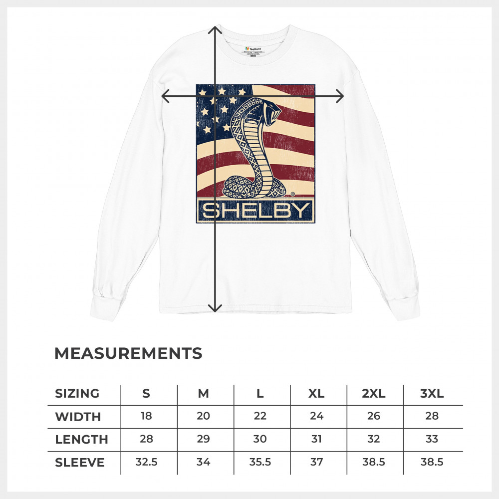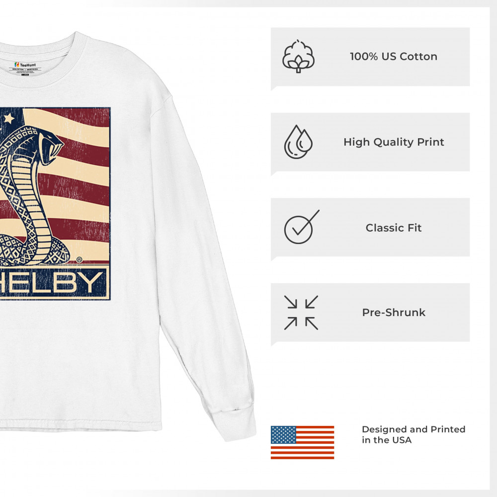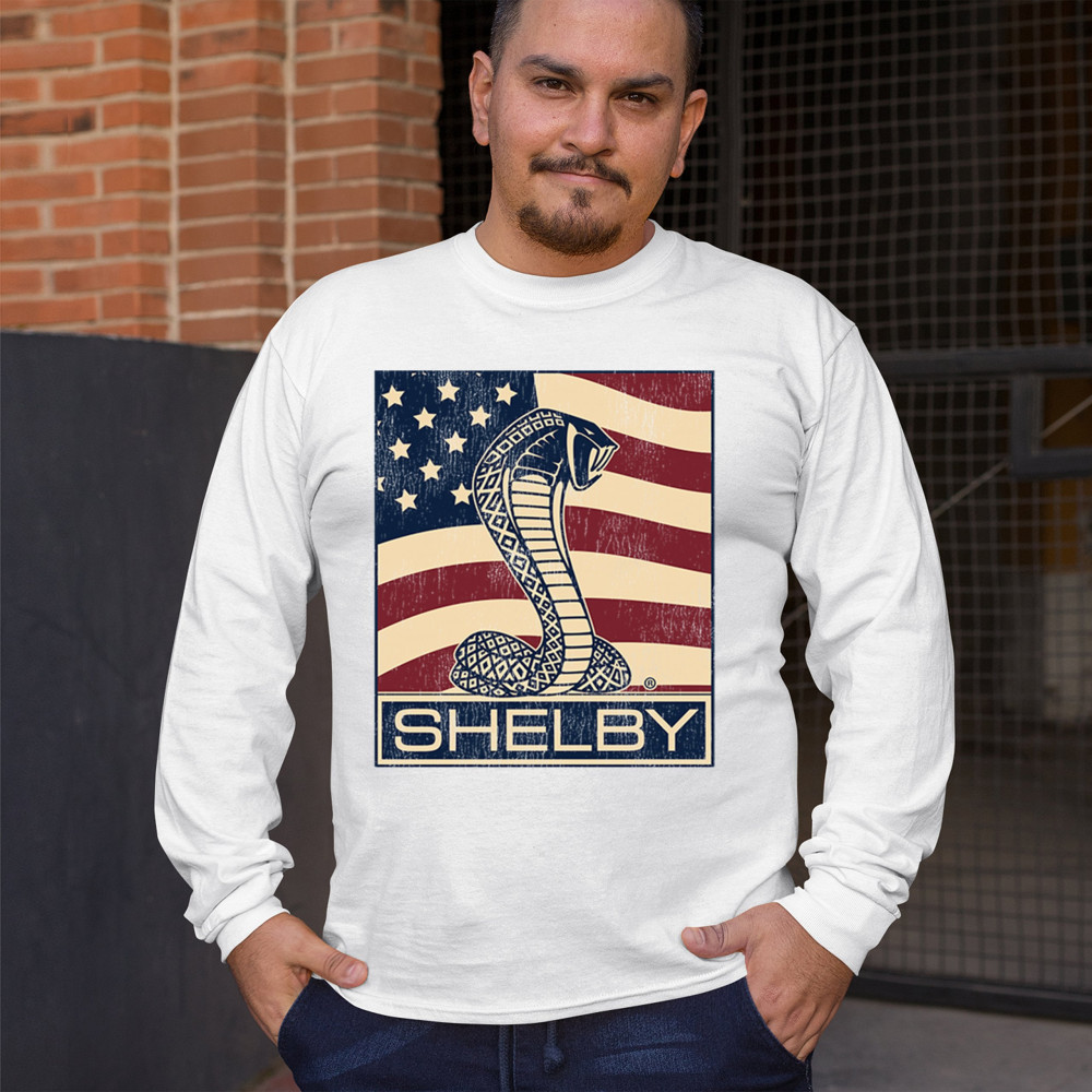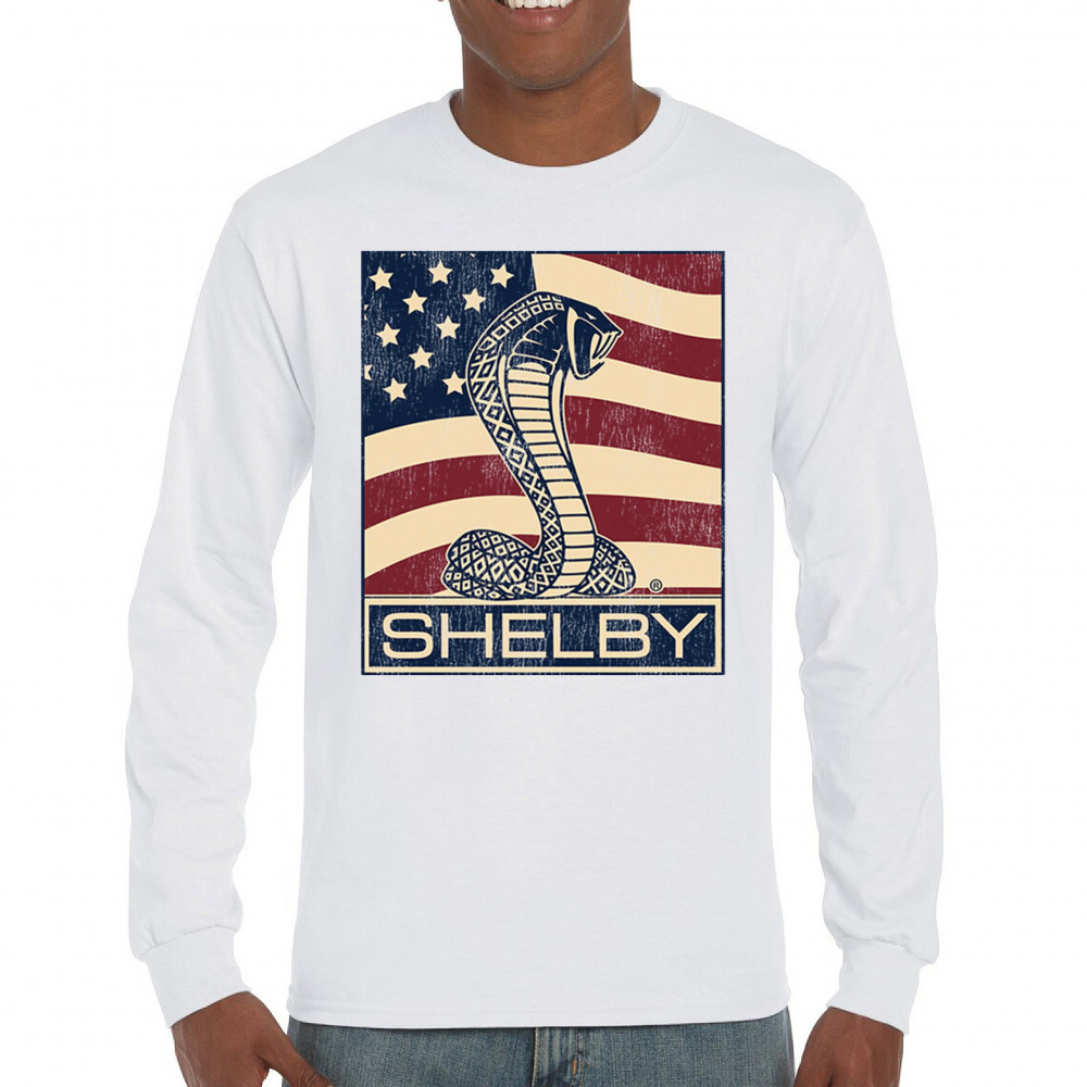 SHELBY COBRA FLAG long sleeve t-shirt legend racing mustang gt powered by ford white