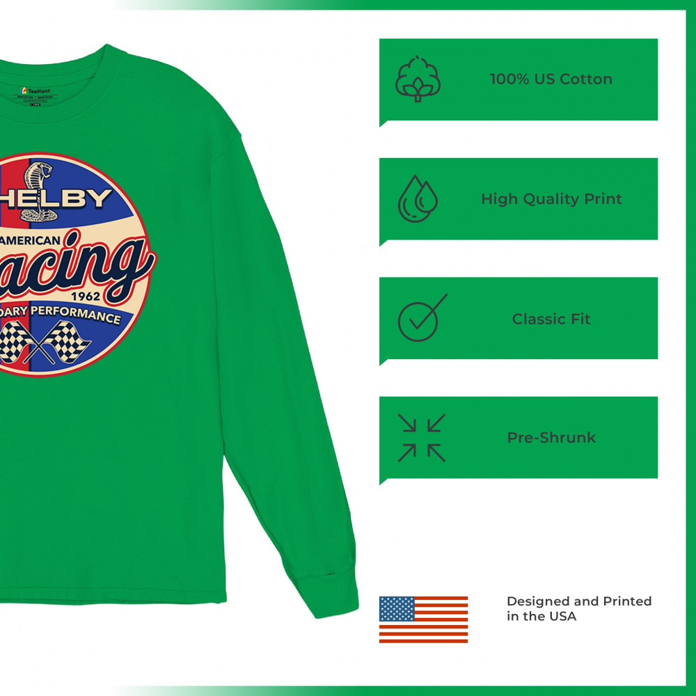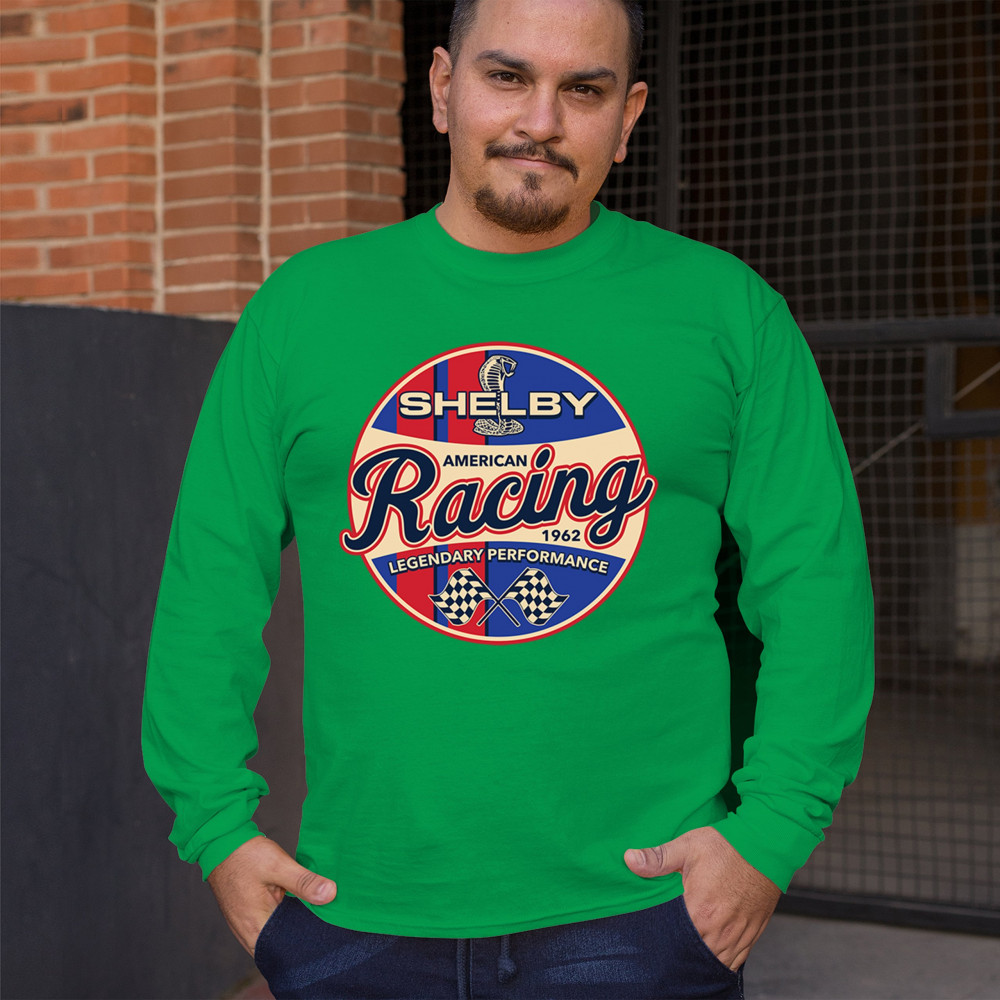 Rev up your wardrobe with our Shelby American Racing design, a tribute to 50 years of Ford Mustang glory and Carroll Shelby's racing legacy.