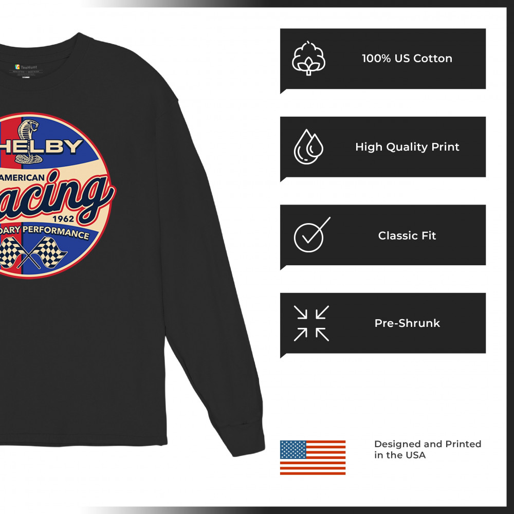 Rev up your wardrobe with our Shelby American Racing design, a tribute to 50 years of Ford Mustang glory and Carroll Shelby's racing legacy.