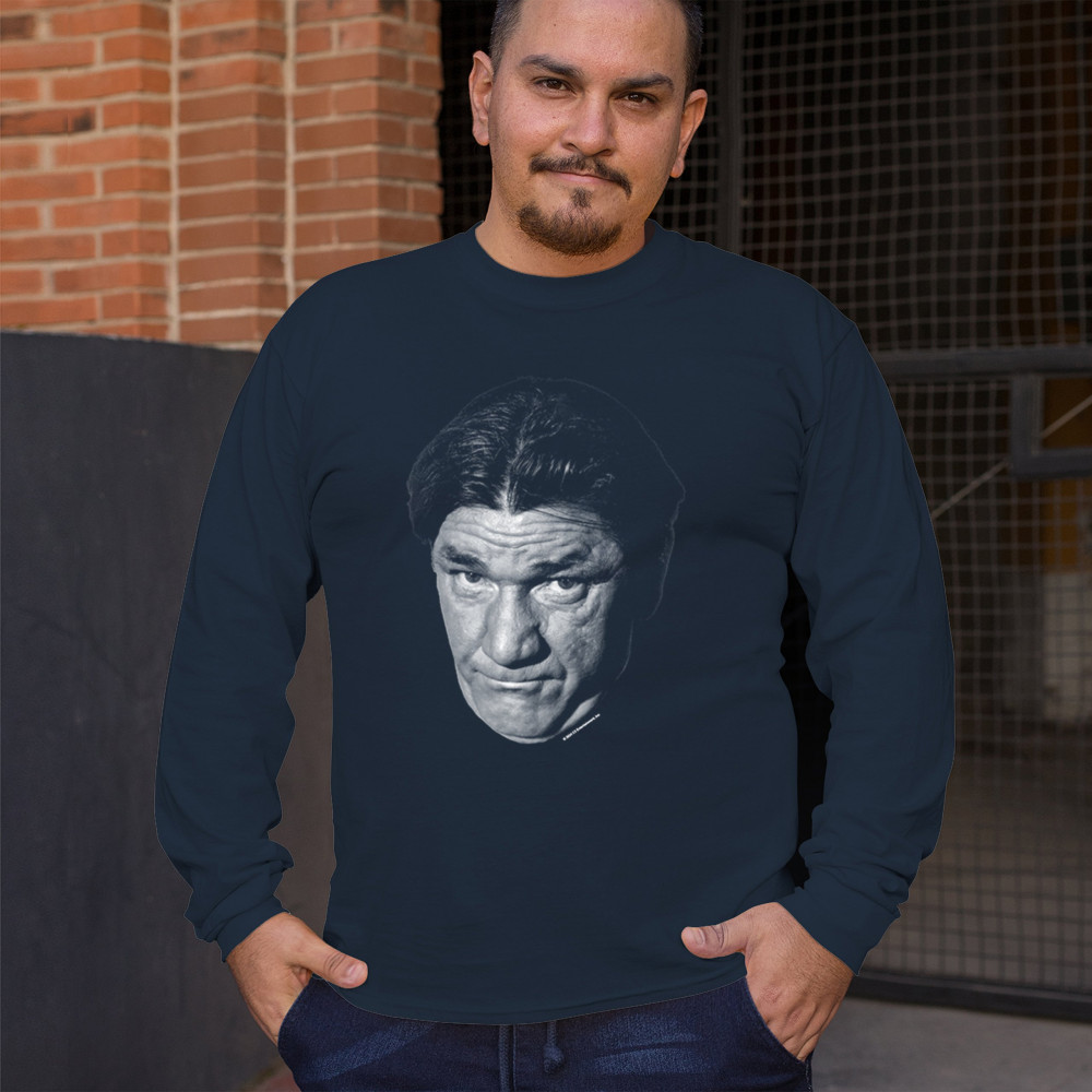 Embrace the humor of the legendary Three Stooges with this captivating design, featuring the unforgettable Shemp. Known for his spontaneity and comedic genius, Shemp's 'dumbfounded' look is immortalized in this high-contrast piece, offering a nostalgic nod to the golden era of slapstick. Perfect for Stooge enthusiasts and collectors, it adds a touch of classic comedy flair to any ensemble.