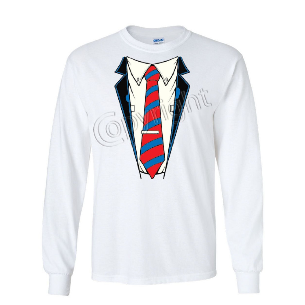SHIRT AND TIE long sleeve t-shirt office suit casual funny tee white