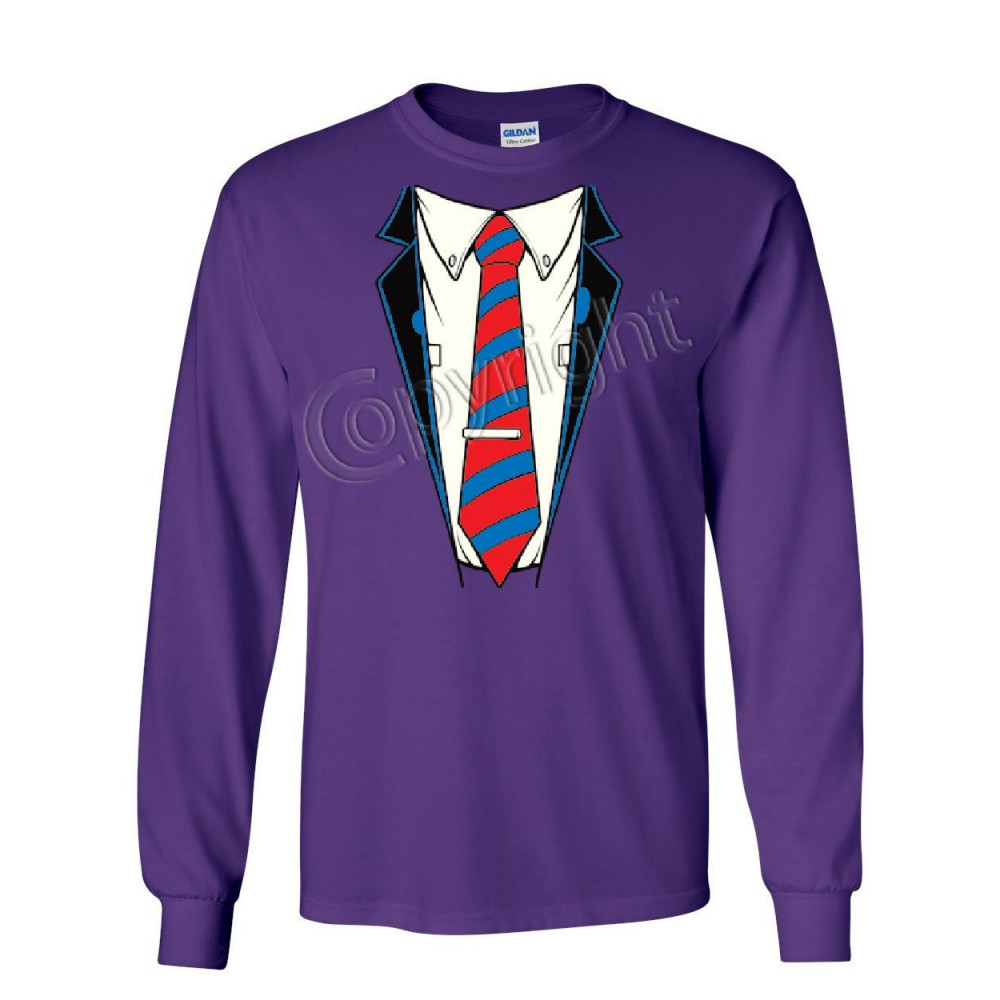 SHIRT AND TIE long sleeve t-shirt office suit casual funny tee purple