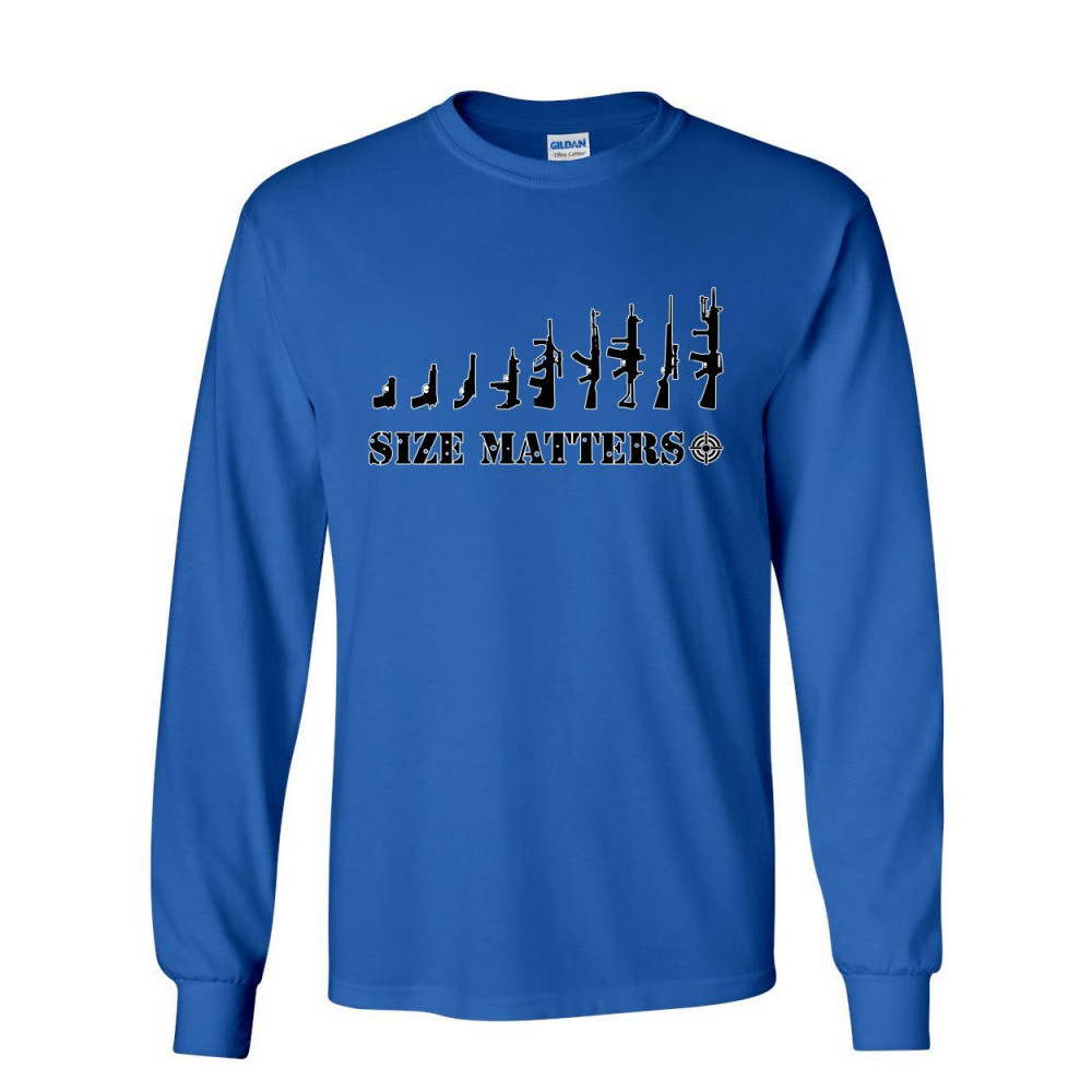 SIZE MATTERS 2a long sleeve t-shirt defend 2nd amendment pro guns weapons tee royal blue