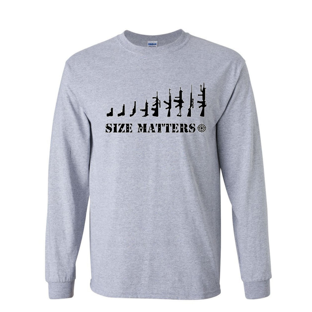 SIZE MATTERS 2a long sleeve t-shirt defend 2nd amendment pro guns weapons tee gray