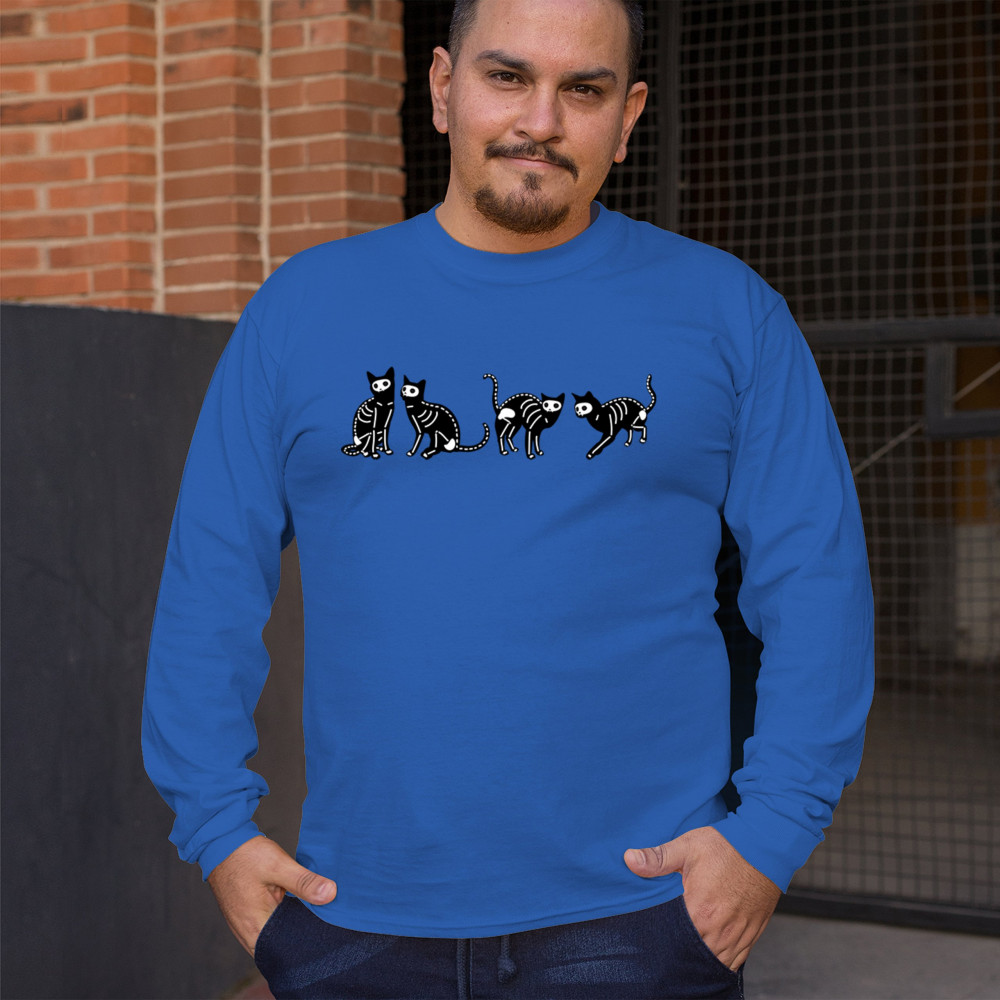 Celebrate spooky season with this playful skeleton cat design, perfect for Halloween parties, trick-or-treat nights, haunted houses, and scary Jack o Lantern vibes. Fans of cat skeleton costumes, day of the dead cats, or skeleton kitty shirts will love this eerie yet fun design.
