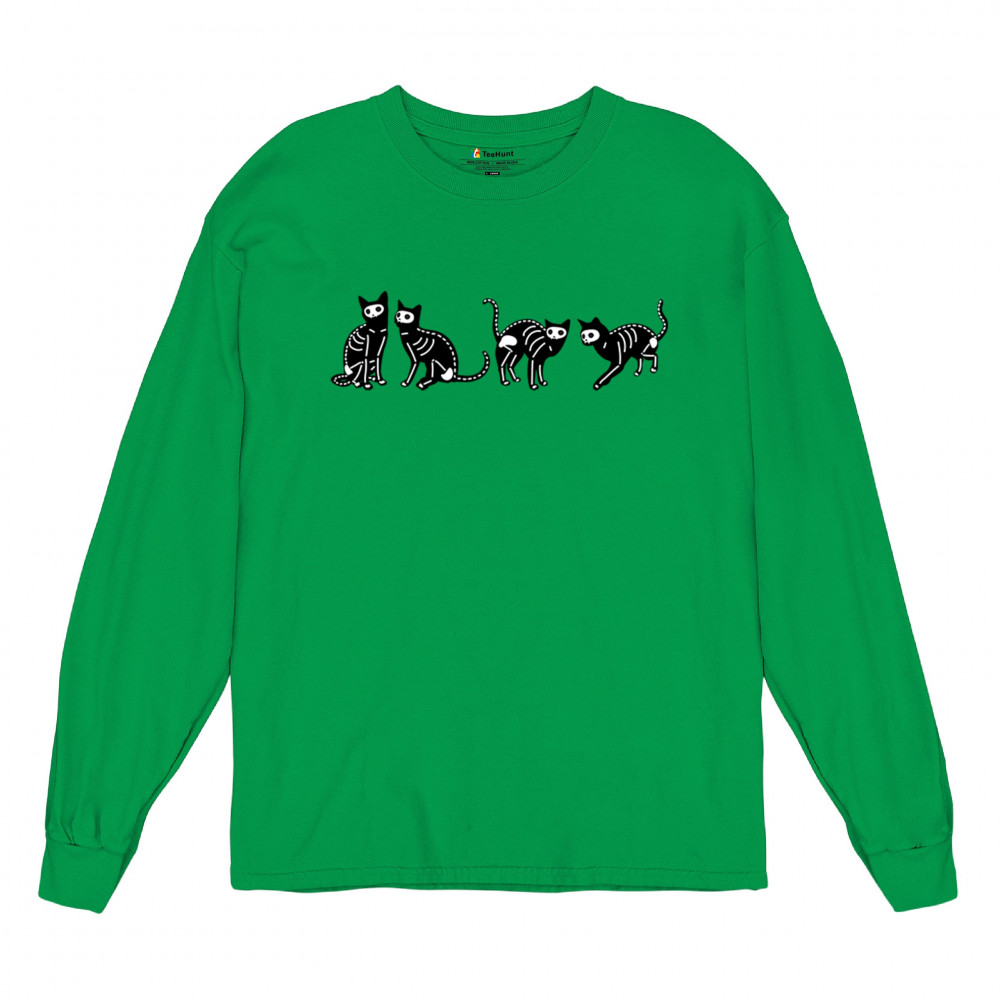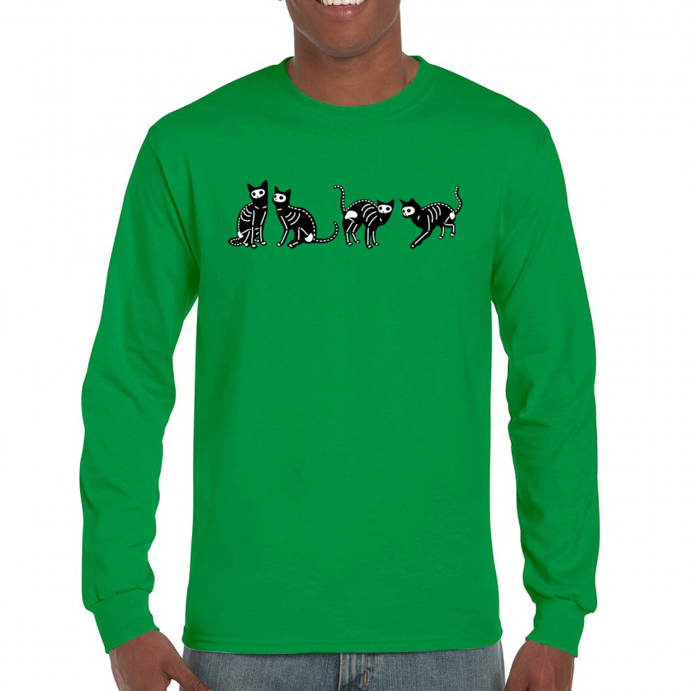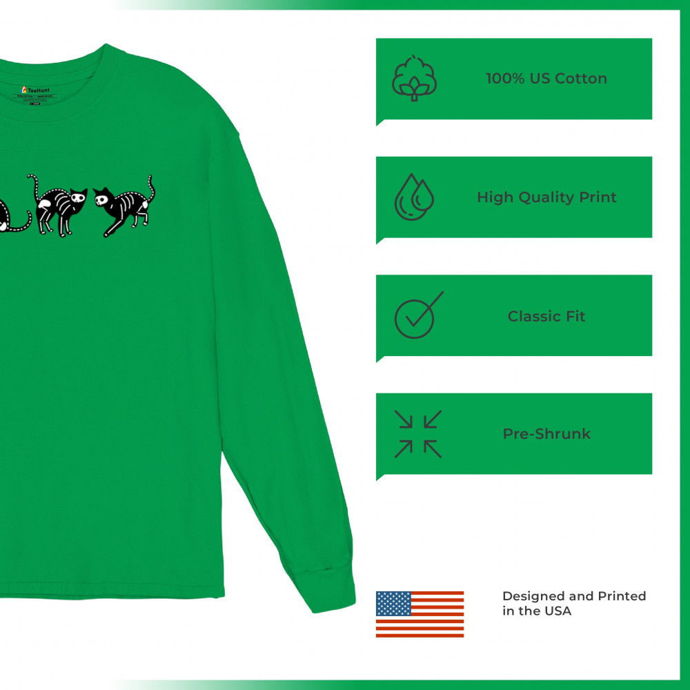 Spooky skeleton cat design for Halloween fans. Perfect for haunted houses, scary Jack o Lantern nights, creepy costumes, and trick-or-treat fun.