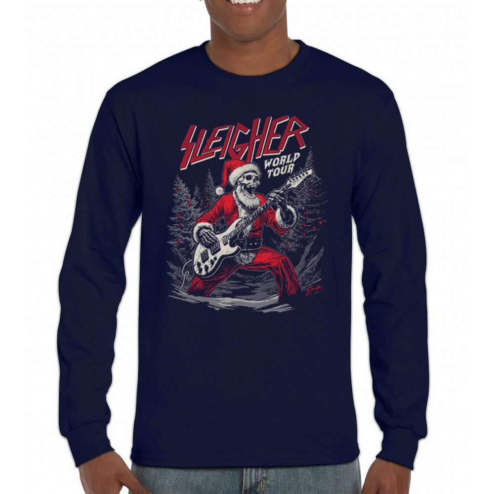 Bring the perfect mix of holiday cheer and rock ‘n’ roll to your wardrobe with the "Sleigher World Tour" design! Featuring a Santa skeleton rocking an electric guitar, this unique and edgy artwork is ideal for music lovers, ugly sweater contests, and festive gatherings. Celebrate Christmas with a rebellious twist and make every holiday event unforgettable!