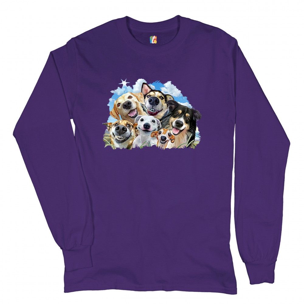 SMILING DOGS' SELFIE long sleeve t-shirt funny animal dog lover cute puppies purple