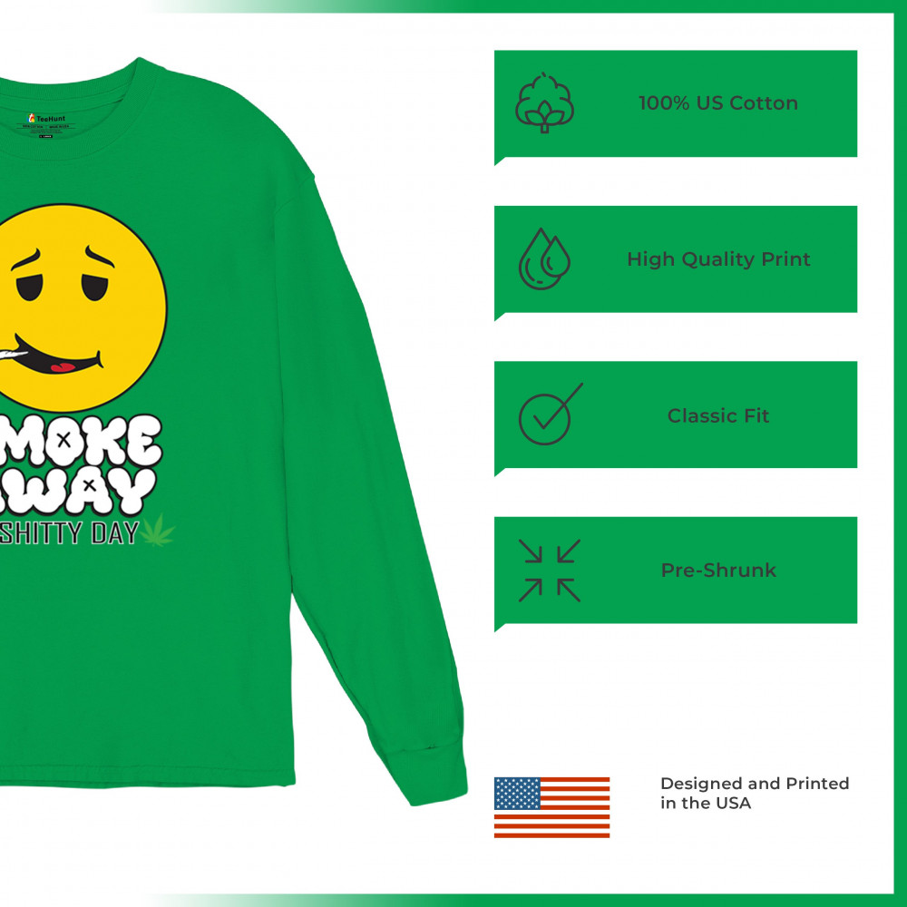 Smiley face with joint and “Smoke Away a Sh*tty Day†message. A perfect cannabis design for stoners, chillers, and sarcastic stress relief.