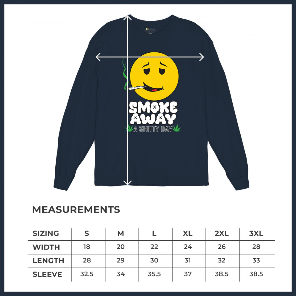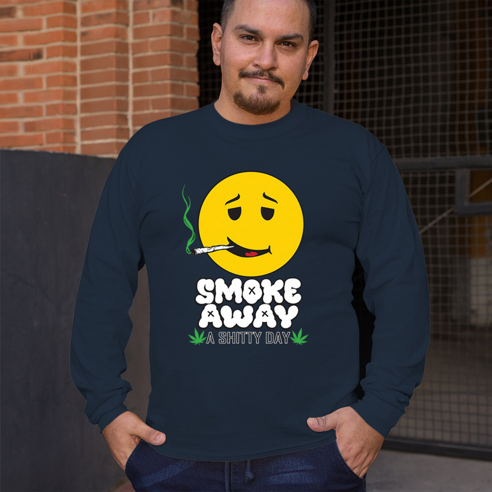 Smiley face with joint and “Smoke Away a Sh*tty Day†message. A perfect cannabis design for stoners, chillers, and sarcastic stress relief.