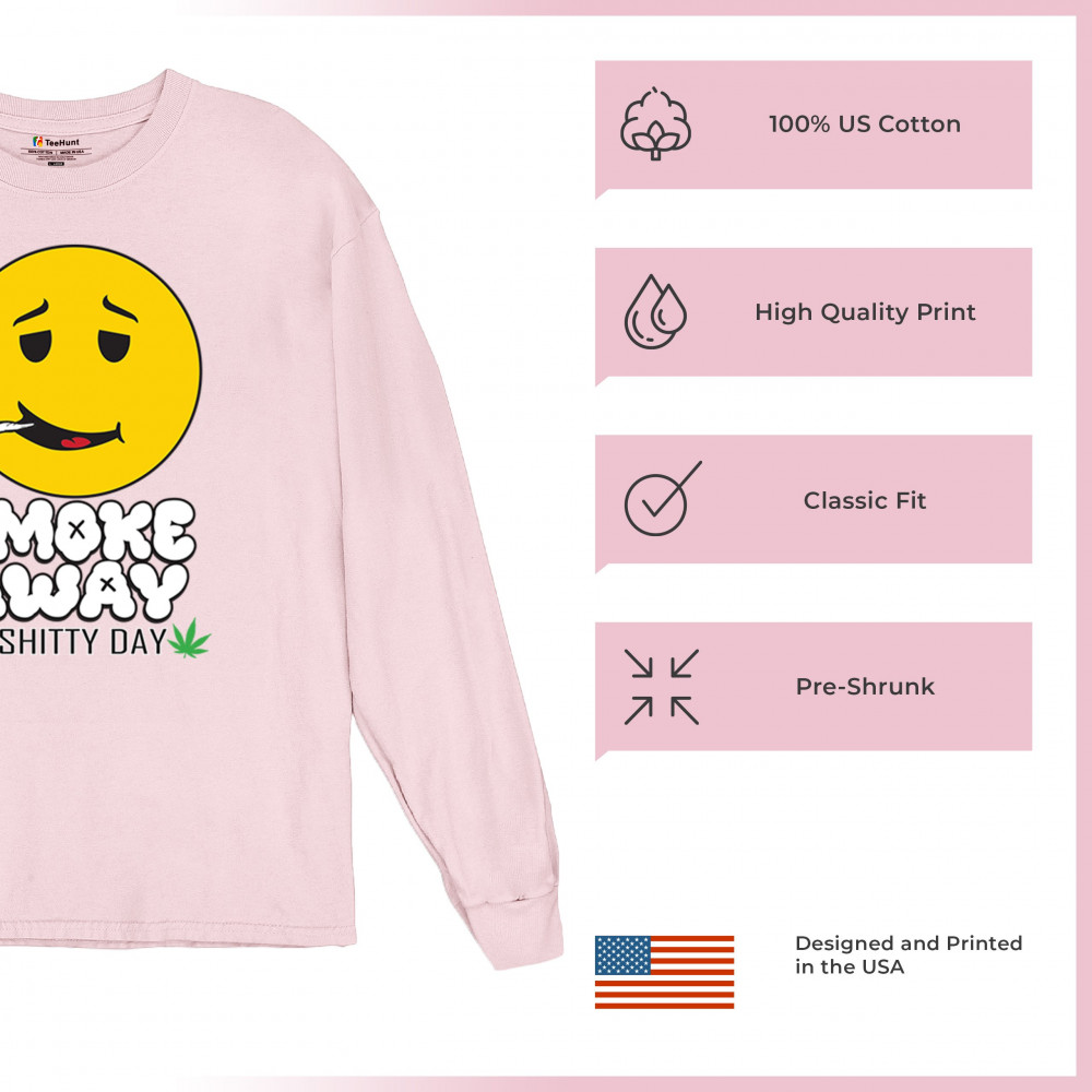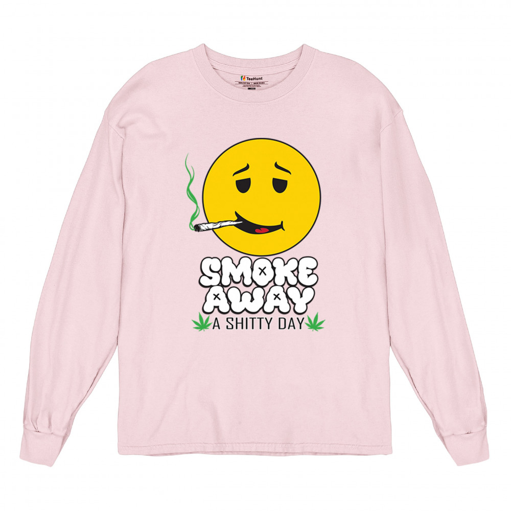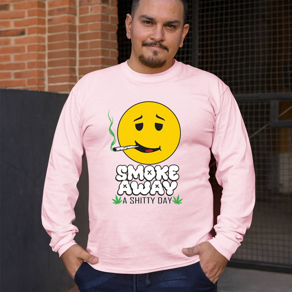 Smiley face with joint and “Smoke Away a Sh*tty Day†message. A perfect cannabis design for stoners, chillers, and sarcastic stress relief.