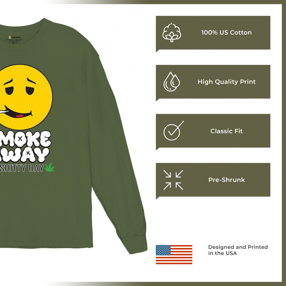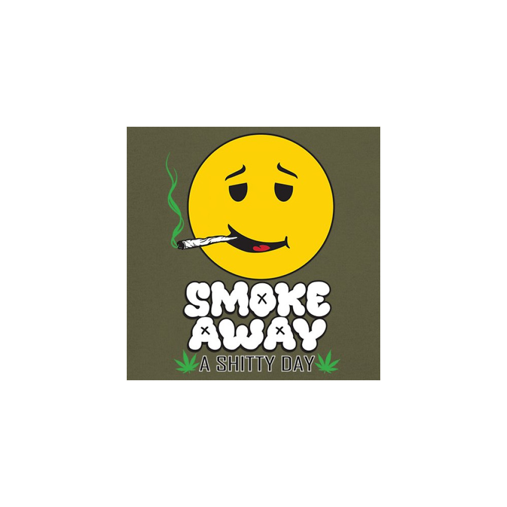 Smiley face with joint and “Smoke Away a Sh*tty Day†message. A perfect cannabis design for stoners, chillers, and sarcastic stress relief.
