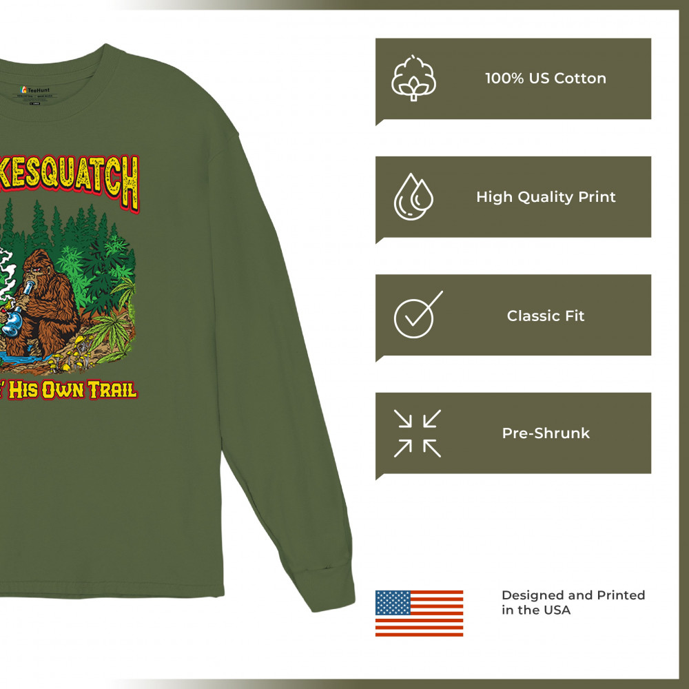 Smokesquatch blazes through the cannabis scene with this hilarious design featuring Bigfoot smoking in the woods. Perfect for cryptid fans, marijuana enthusiasts, 420 festival goers, and lovers of stoner humor. This design fuses wilderness myth with cannabis culture for a bold and funny forest-themed statement.