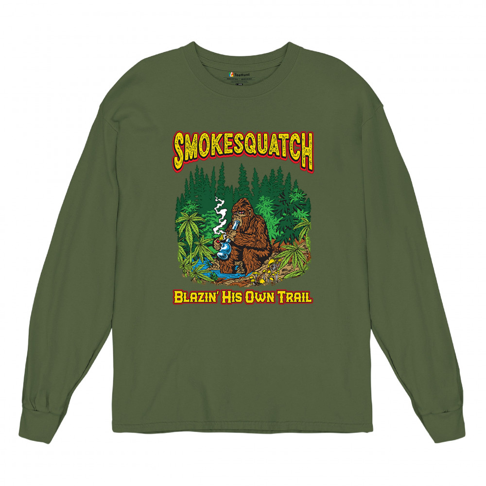 Funny Bigfoot stoner design for cannabis lovers, cryptid fans, and 420 culture. Smokesquatch blazes through forest vibes and weed humor.