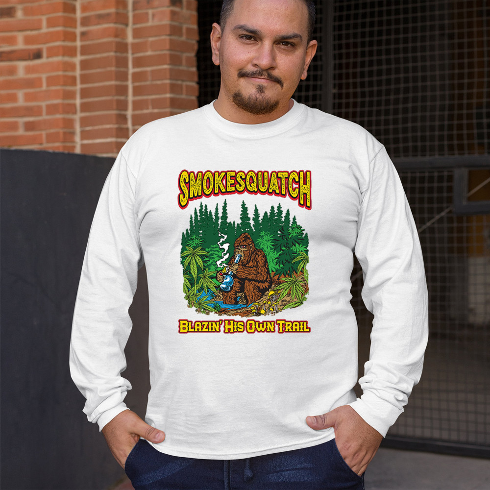 Smokesquatch blazes through the cannabis scene with this hilarious design featuring Bigfoot smoking in the woods. Perfect for cryptid fans, marijuana enthusiasts, 420 festival goers, and lovers of stoner humor. This design fuses wilderness myth with cannabis culture for a bold and funny forest-themed statement.