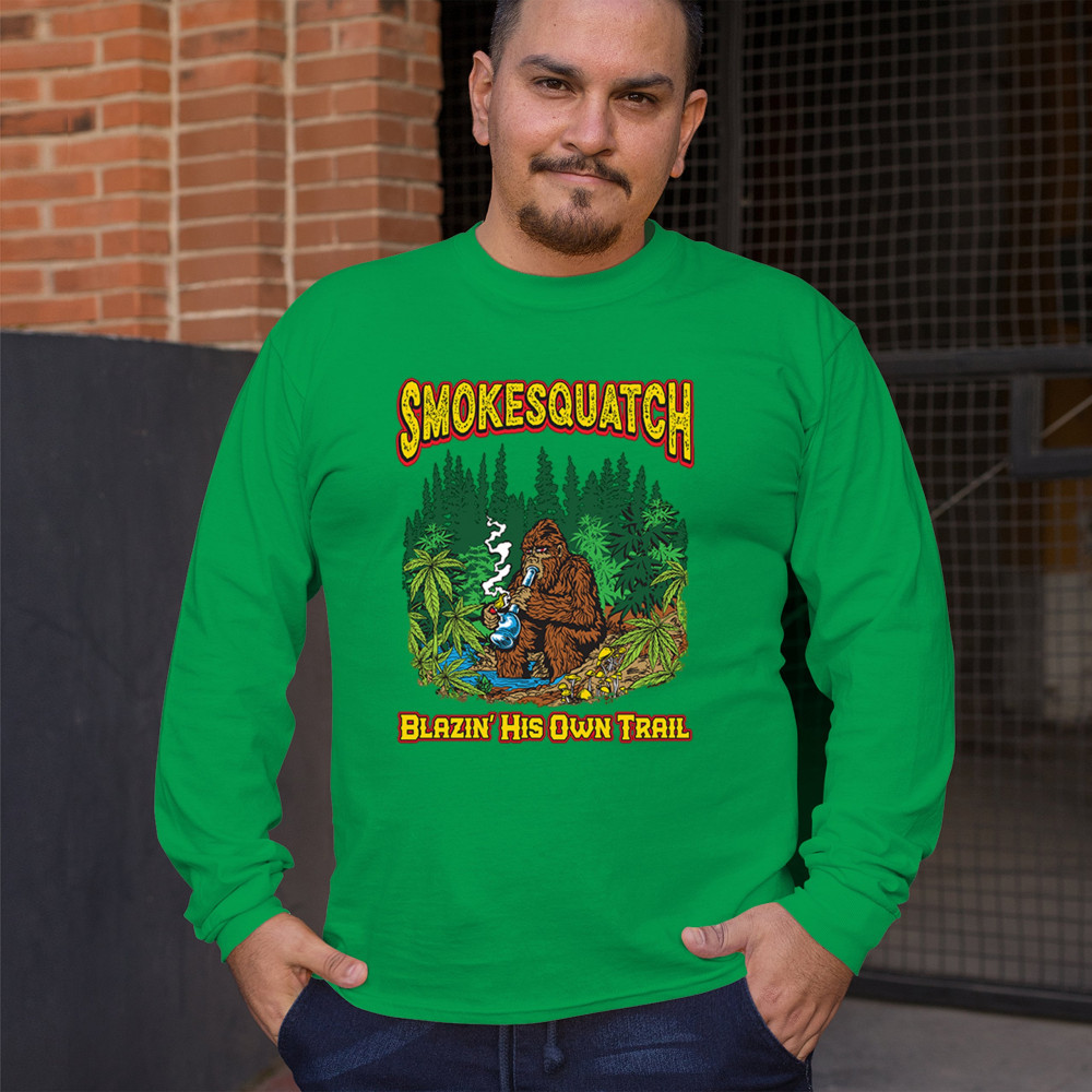 Smokesquatch blazes through the cannabis scene with this hilarious design featuring Bigfoot smoking in the woods. Perfect for cryptid fans, marijuana enthusiasts, 420 festival goers, and lovers of stoner humor. This design fuses wilderness myth with cannabis culture for a bold and funny forest-themed statement.