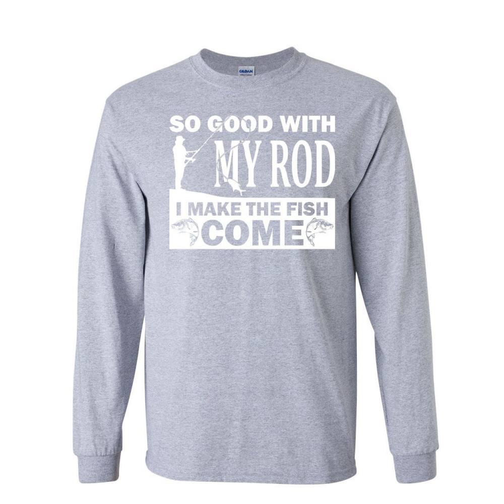 SO GOOD WITH MY ROD I MAKE FISH COME long sleeve t-shirt fly fishing hobby tee gray