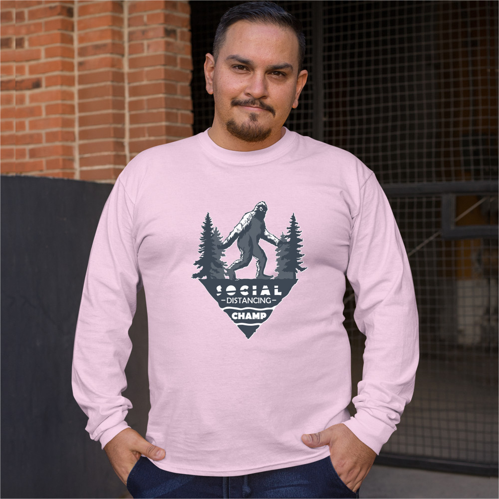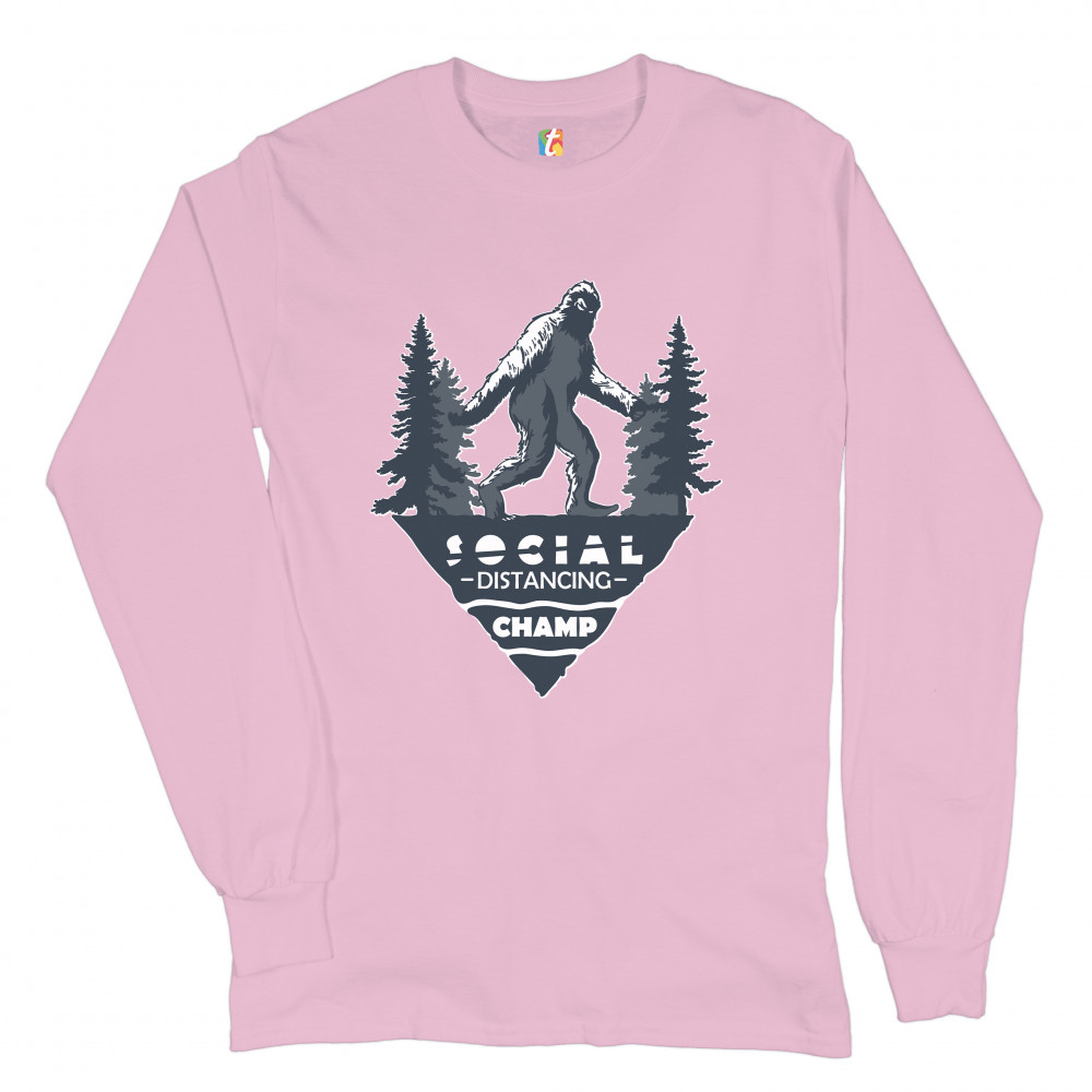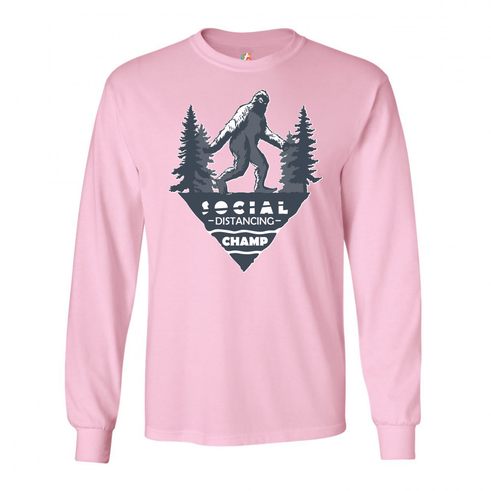 SOCIAL DISTANCING CHAMP long sleeve t-shirt funny bigfoot yeti virus quarantine light pink