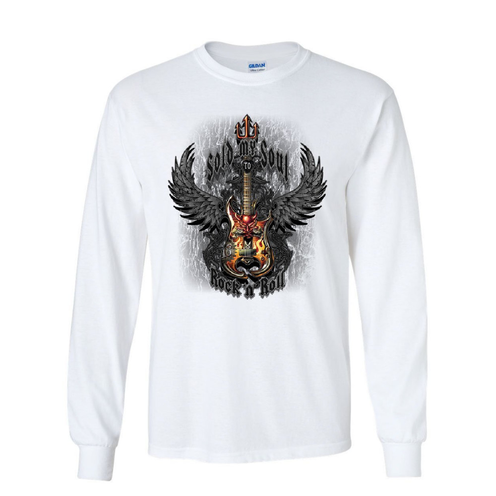 SOLD MY SOUL TO ROCK & ROLL long sleeve t-shirt demon guitar wings trident tee white